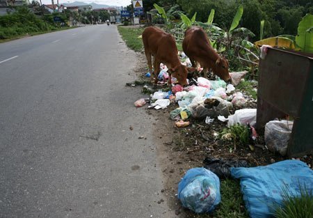 - Vài năm gần đây, những đàn bò được chăn thả trên những đống rác thải sinh hoạt đã trở nên phổ biến ở nhiều địa phương, bất chấp tác hại từ loại "thực phẩm chăn nuôi" này đã được các nhà khoa học, chuyên gia cảnh báo từ lâu.