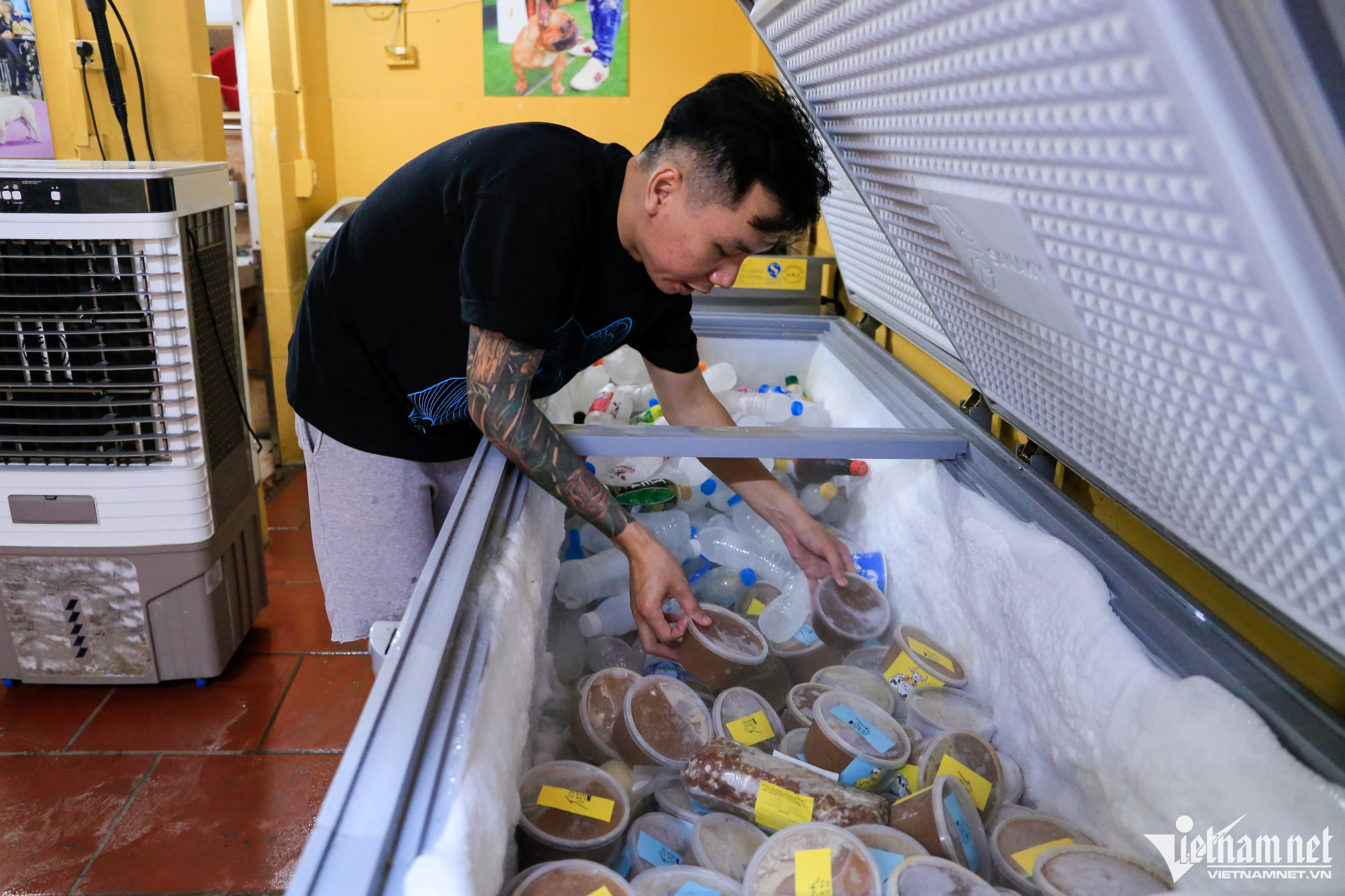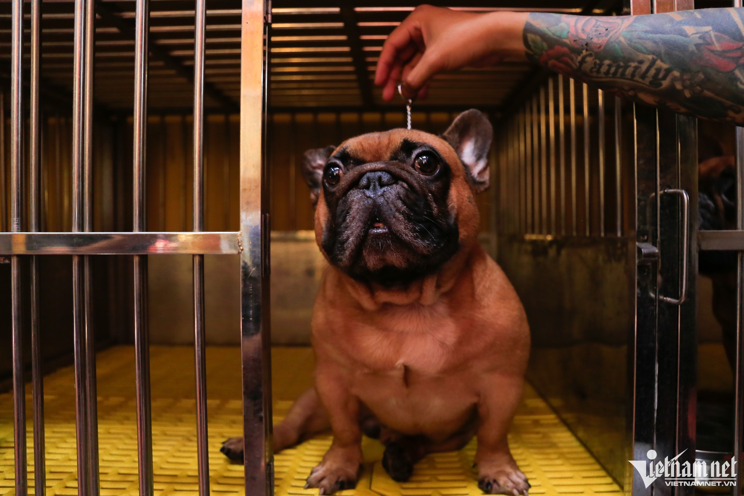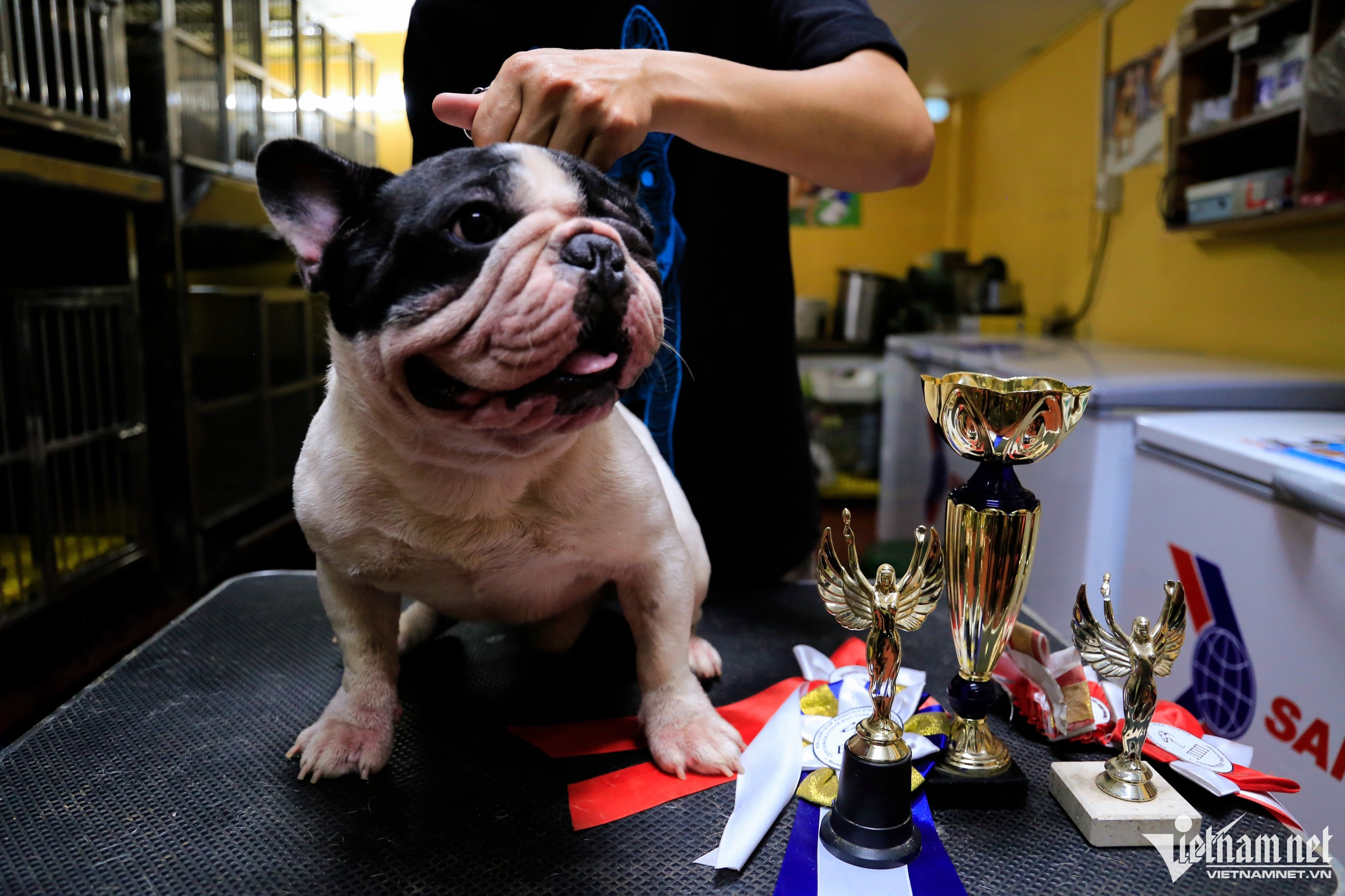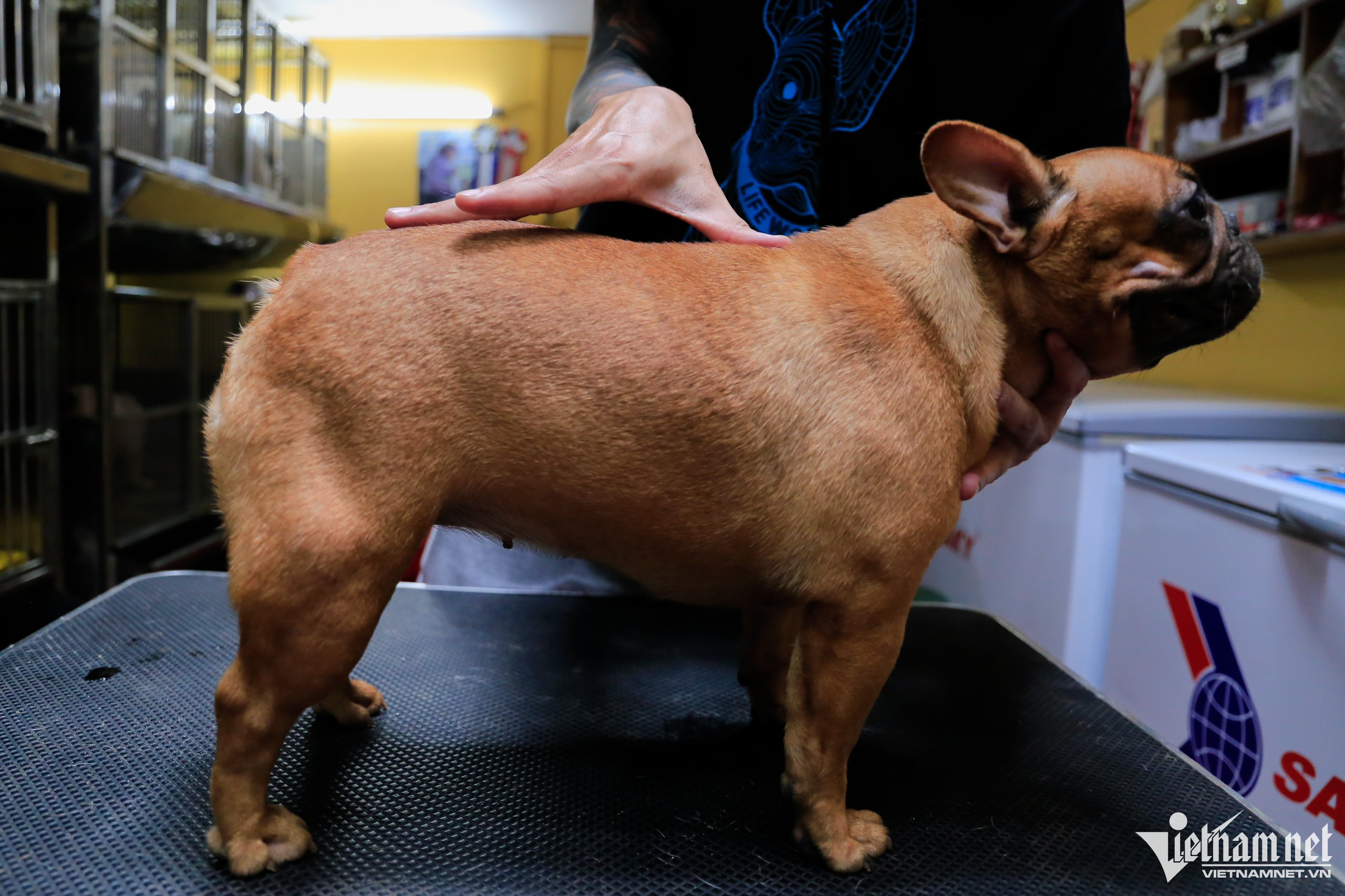 Chàng bếp trưởng của một nhà hàng ẩm thực Italy Nguyễn Hoàng Trung (quận Hoàng Mai, Hà Nội) nuôi dưỡng hơn 10 chó bull Pháp thuần chủng trong một căn phòng rộng khoảng 30m2. Mỗi con chó xuất xứ từ các nước châu Âu tại đây có giá từ 100-200 triệu đồng.Năm 2009 anh Trung đã nuôi một số dòng chó to như Rotweiler, Husky, Malinois…. Sau thời gian tìm hiểu và tích lũy được nhiều kinh nghiệm, anh quyết định đầu tư vào dòng bull Pháp, giống chó dễ nuôi, ít sủa, thân thiện, phù hợp với các gia đình có trẻ em hay việc nuôi dưỡng ở chung cư.Thời mới khởi nghiệp, chú chó ban đầu anh Trung nhập về có tên là CR7 có giá 200 triệu đồng, vận chuyển từ Ukaine. “Khi thấy CR7 trên mạng xã hội với khuôn mặt ngố, đôi mắt to tròn và trên trán có nếp nhăn một cầu, một nét hiếm trong dòng bull Pháp, tôi đã quyết định mua. Sau đó, kể từ khi nhận được một số lời mời phối giống từ những chủ nuôi khác, tôi quyết định chuyển hướng sang mô hình phối giống loài chó này”, anh Trung chia sẻ. Một giống chó khác là M10 cũng được anh Trung nhập từ Ukaine về Việt Nam, giá gần 300 triệu đồng bao gồm chi phí nuôi rồi đưa sang chăm sóc tại Nga để tham gia một số cuộc thi. Theo anh Trung, việc nhập khẩu chó từ nước ngoài về Việt Nam rất phức tạp và đắt đỏ, chi phí khoảng 20 triệu-30 triệu đồng. Thủ tục cần phải có 4-5 loại giấy tờ chứng minh nguồn gốc, kiểm dịch gắt gao từ hai phía xuất, nhập. Vì vậy, để sở hữu một chú chó thuần chủng khách hàng sẽ phải chi ra một số tiền lớn. “Đa phần tệp khách của tôi là những khách quen có thu nhập ổn định, gia đình có trẻ nhỏ hay ở chung cư. Vì bull Pháp là dòng ít có nhu cầu vận động”, anh Trung nói thêm. Nhiệt độ trong phòng để chăm sóc những chú chó rất quan trọng, khoảng 26 - 29 độ C, nhất là khi chó từ nơi có mùa đông lạnh âm độ C chuyển sang nơi có khí hậu nhiệt đới gió mùa ẩm như Việt Nam, do vậy bull Pháp cần 2 tháng để thích nghi.Thức ăn của chó được anh Trung dự trữ trong 2 tủ đông cỡ lớn với nhiều loại khác nhau. Trung bình một tháng hết khoảng 8-10 triệu đồng tiền ăn cho 10 chú chó. Để cơ thể chúng phát triển khoẻ mạnh, không bị ốm vặt, đều đặn mỗi ngày anh cho ăn 2 lần. Thức ăn của chúng chủ yếu là cá hồi, thịt bò, thịt gà xay nhuyễn trộn với hạt và cơm, bổ sung thêm sữa tươi, sữa chua một tuần một lần để cung cấp thêm dưỡng chất.Ngoài việc bổ sung dinh dưỡng cần thiết cho chúng, anh Trung còn đầu tư một số thiết bị y tế, thuốc, que test máu dành cho chó để xử lý kịp thời khi có trường hợp khẩn cấp.Để đánh giá một chú chó đẹp, anh Trung có những tiêu chí cơ bản như phom người hình vuông, không bị béo phì, cổ không được quá dài cũng như quá ngắn so với cơ thể và còn phụ thuộc vào màu lông. Như bull Pháp sẽ có 3 màu như đen, nâu và bò sữa. Gần 4 năm nhân giống, hai chú chó CR7 và M10 đã cho ra hơn 1.000 con giống khác nhau. Trong ảnh là hai chú chó tên Chuối và Bo là con của CR7 và M10 có giá trị từ 50 triệu - 80 triệu đồng.Giá xuất chuồng cho mỗi chú chó con dao động từ 20-50 triệu đồng hoặc một lần phối giống 5-7 triệu đồng tuỳ vào cá thể khách hàng lựa chọn. Là những chú chó có nguồn gen từ giống thuần chủng, chúng sẽ sinh ra các F1 khoẻ mạnh. Sau khoảng 2 tháng tuổi và tiêm đủ 2 mũi vaccine, chó sẽ được giao bán.