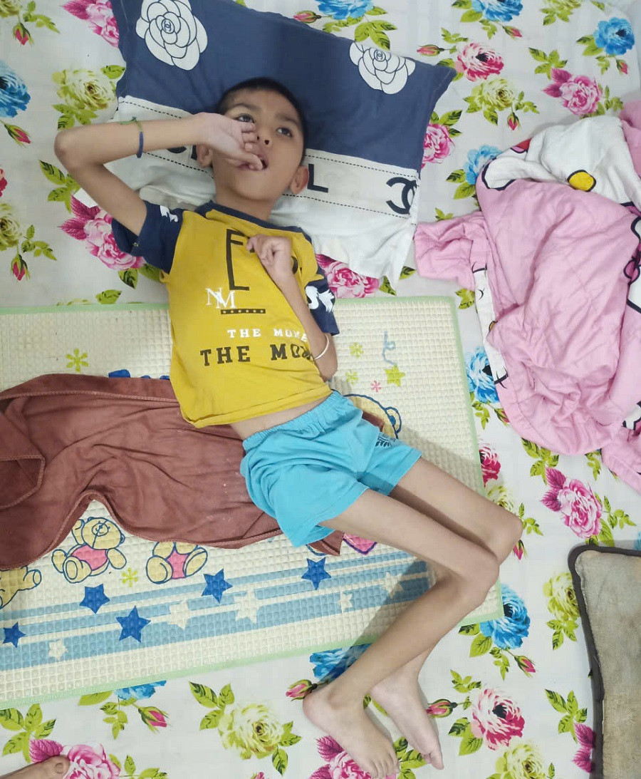 Khi mới 3 tháng tuổi, Bữu Long bị chẩn đoán xuất huyết não sau nhiều ngày sốt cao. Con phải trải qua ca đại phẫu để cứu mạng, nhưng rồi di chứng tổn thương não khiến con bị động kinh cục bộ và bại liệt, chẳng thể ngồi, cũng không thể nói. Lên 9 tuổi, cậu bé có gương mặt sáng sủa nhưng cơ thể gầy guộc chỉ còn da bọc xương, tay chân thường hay co quắp, ú ớ gọi mẹ.