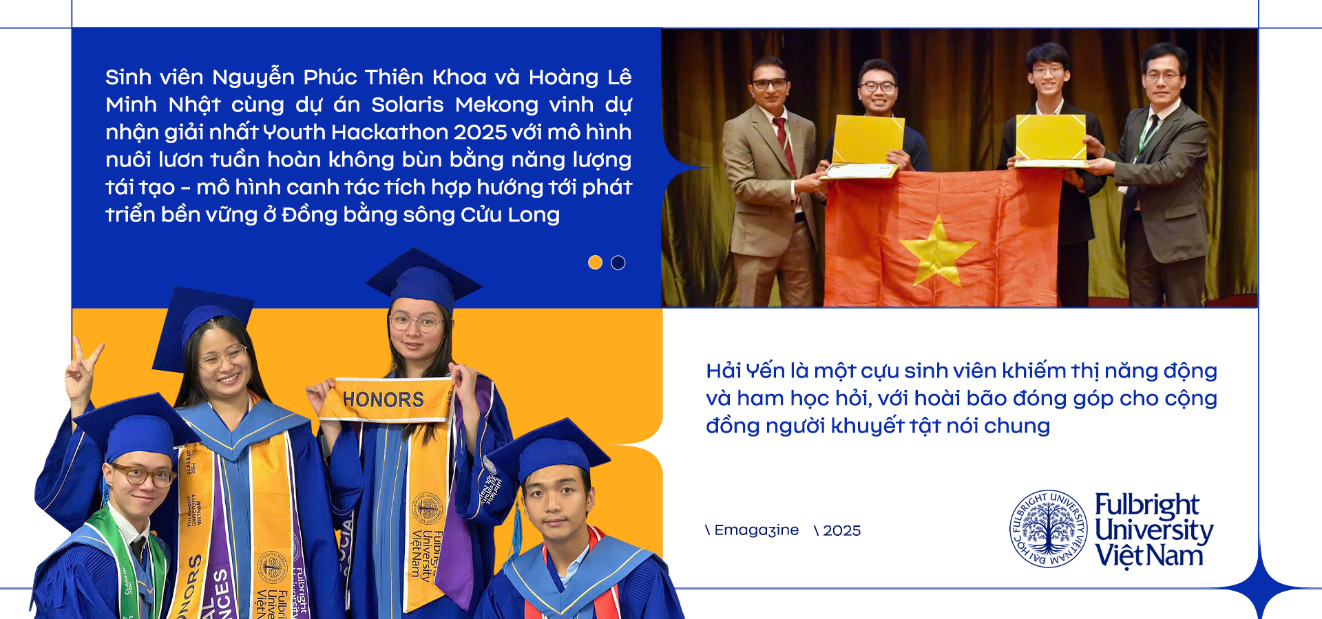 Hay câu chuyện của Đồng Thị Hải Yến, cựu sinh viên ngành Tâm lý học tại Đại học Fulbright. Với mong muốn hỗ trợ cộng đồng khiếm thị, Yến thành lập Spa Khiếm Thị MY và The VIP Companion (VIC) - dự án chuyên về kỹ năng và định hướng nghề nghiệp cho người khuyết tật. Sau khi tốt nghiệp, Yến đỗ Thực tập sinh Nghiên cứu Khoa học Sức khỏe Tâm thần của trường Harvard T.H. Chan School of Public Health và Trợ lý Nghiên cứu tại trường University of Wisconsin-Madison (Hoa Kỳ), hai trường đại học hàng đầu thế giới về sức khỏe cộng đồng.