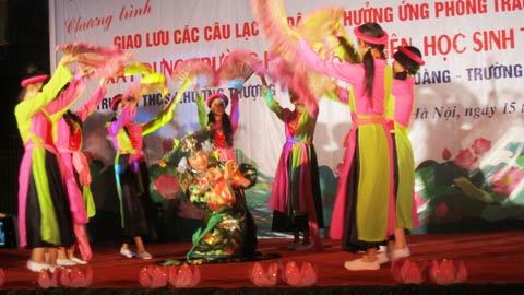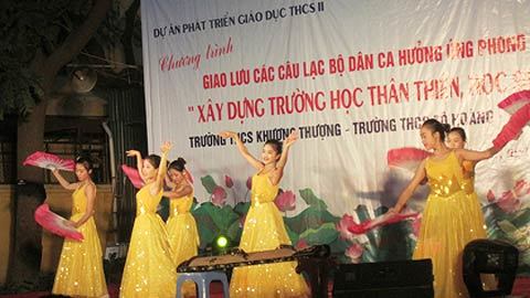 trào thi đua "xây dựng trường học thân thiện, học sinh tích cực", học sinh 3 trường THCS ở Hà Nội tụ hội trong chương trình giao lưu các câu lạc bộ yêu thích dân ca, trình diễn nhiều tiết mục đặc