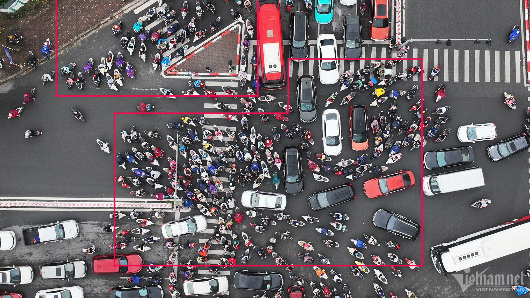 Trong ảnh, người đi xe máy len vào bất cứ khe hở nào để tìm lối thoát qua ngã tư đang rối loạn.