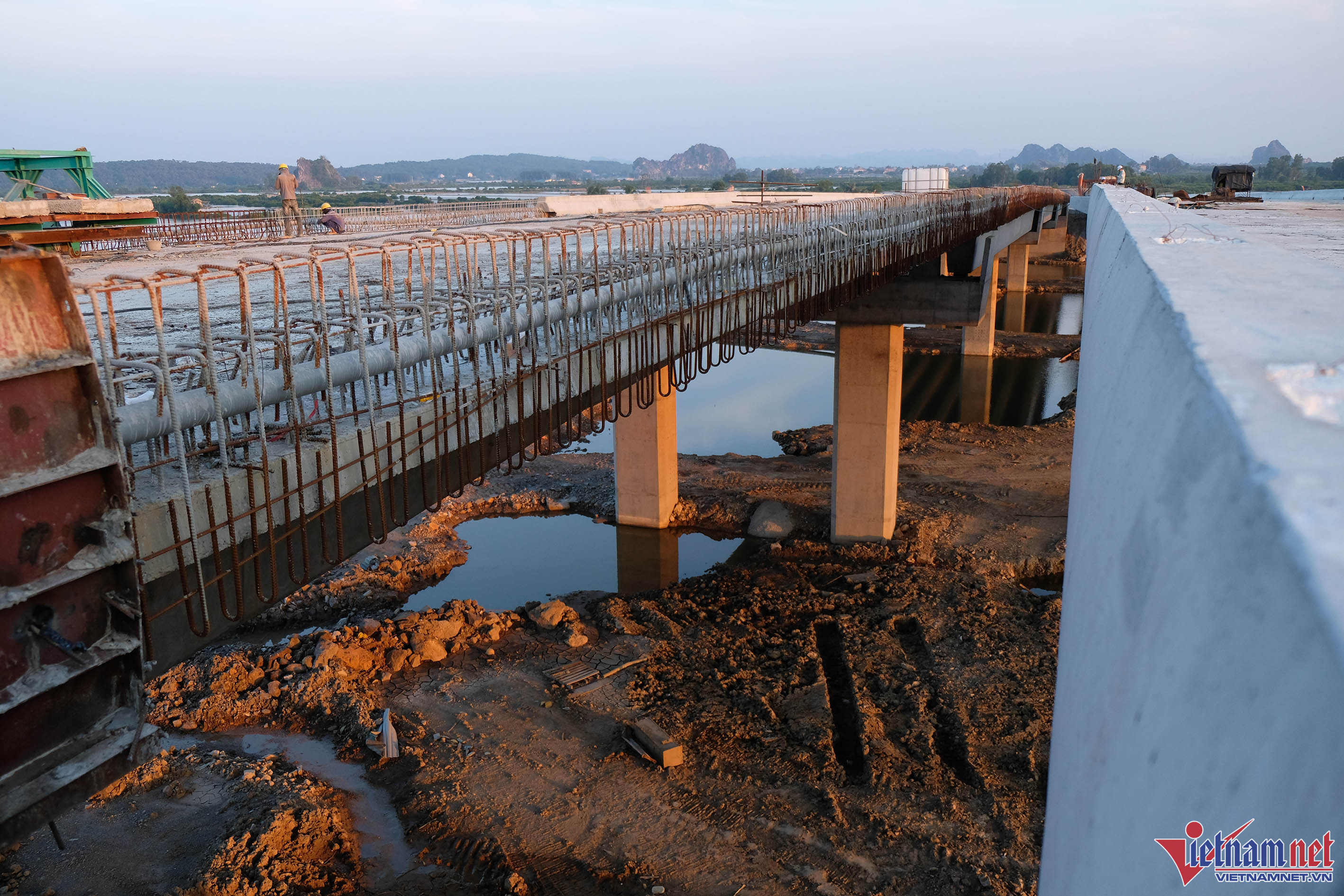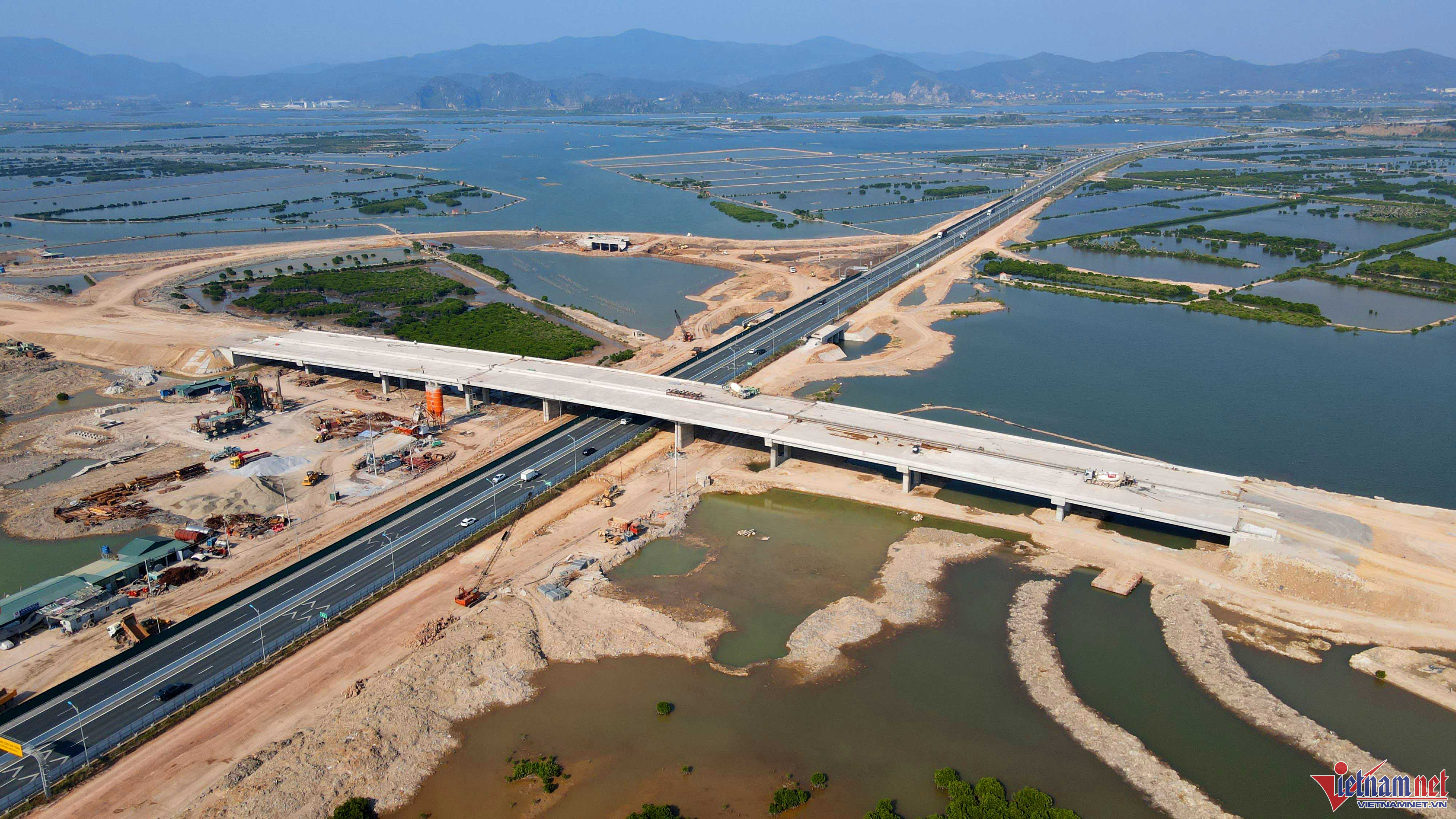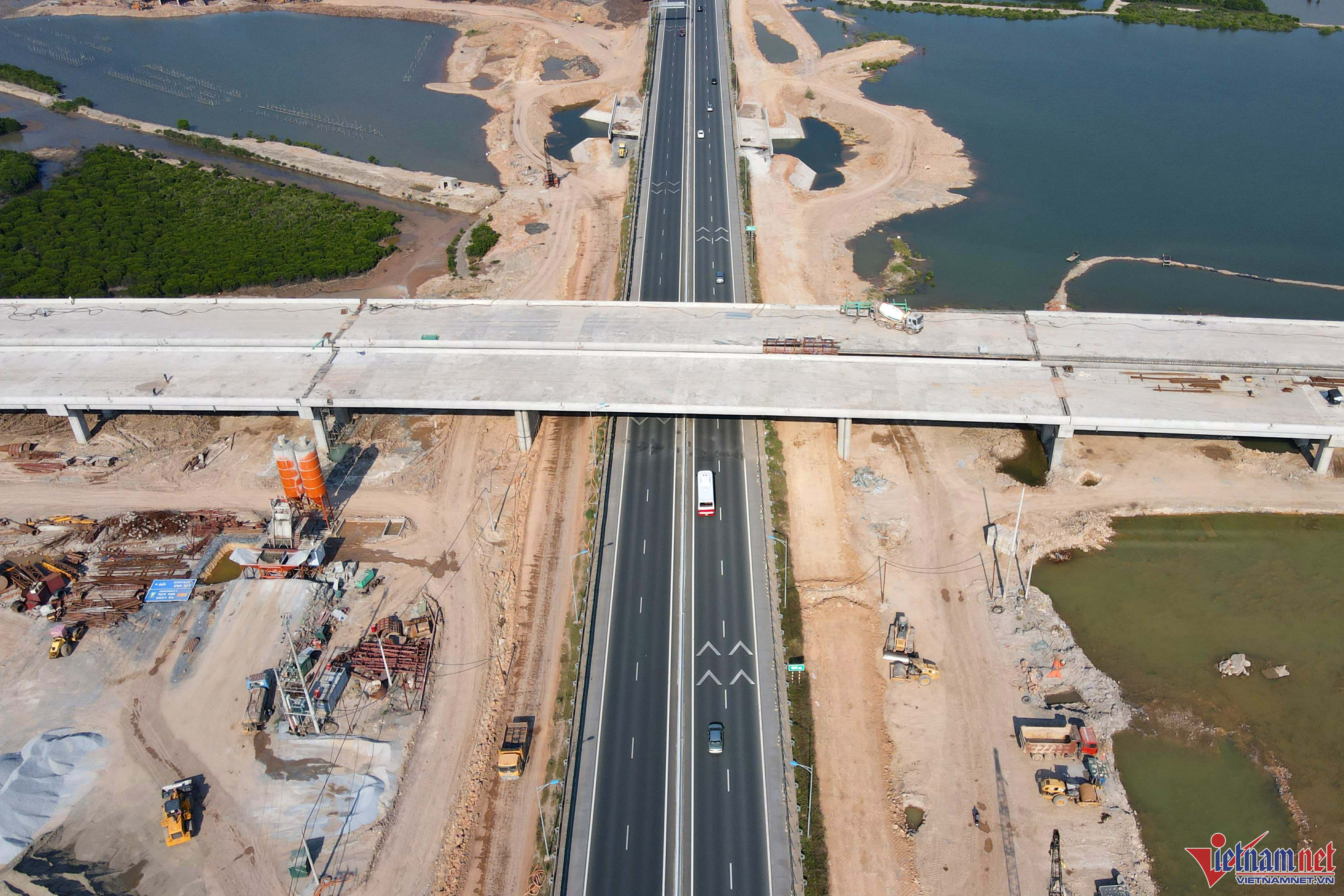 Nút giao Km6+700 cao tốc Hạ Long - Hải Phòng (nút giao Hạ Long Xanh) được khởi công từ cuối tháng 12/2020 với tổng vốn đầu tư gần 1.000 tỷ đồng từ ngân sách tỉnh Quảng NinhThời gian thi công dự kiến 450 ngày. Tuy nhiên, nút giao này liên tiếp gặp những khó khăn trong quá trình tổ chức thi công khiến tiến độ công trình đến nay mới đạt 65% khối lượng các phần việc dù dự án đã được UBND tỉnh gia hạn phải hoàn thành vào cuối năm 2022. Nhà thầu và chủ đầu tư đang xin gia hạn tiếp, cam kết hoàn thiện dự án vào tháng 10/2023Lý do xin gia hạn là do chưa giải phóng xong mặt bằng và thiếu vật liệu đắp nền đường, khan hiếm nguồn đất đắp, dẫn đến tình trạng dự án "dậm chân tại chỗ" nhiều tháng nayHiện tại có 4 hộ dân chưa đồng thuận bàn giao mặt bằng nên đoạn đường nối nút giao với đường tỉnh 338 hiện còn khoảng hơn 1km chưa thi công được. Đồng thời, phần đất đổ nền ở đây phải chờ thời gian lún gia cố trong 6 thángHiện hạng mục cầu vượt cao tốc Hạ Long - Hải Phòng đã hoàn thành kết cấu chính, thời gian tới sẽ được lắp lan canCầu vượt dài hơn 360m, gồm 2 đơn nguyên độc lập cách nhau 2,5m. Bề rộng mặt cầu mỗi đơn nguyên 16m, bao gồm 3 làn xe cơ giới, một làn xe hỗn hợpMỗi ngày có khoảng 100 công nhân chia làm 3 ca làm việc từ 6h sáng đến 22h Công nhân đang hoàn thành kết cấu của cống thoát nước trên nút giao Hạ Long XanhMáy móc hiện máy móc đều có đủ tại công trường để vận hành khi có đủ lượng đất đổ nềnNút giao Hạ Long Xanh được triển khai đầu tư trên diện tích 77,6ha, thuộc phường Tân An, TX Quảng Yên, nối với cao tốc Hạ Long - Hải Phòng tại Km6+700. Đây là nút giao lớn thứ 2 của tỉnh sau nút giao Đầm Nhà Mạc cũng đang được đầu tư thi công