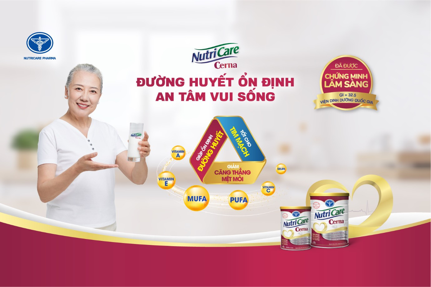 Nhiều người tiểu đường stress vì không biết phải ăn uống thế nào cho hợp lý - ăn nhiều thì sợ đường huyết tăng cao, mà kiêng khem quá mức lại lo không đủ chất. Với mong muốn góp phần tạo ra một chế độ ăn lành mạnh và hạnh phúc cho người tiểu đường, công thức dinh dưỡng có trong sản phẩm Nutricare Cerna đáp ứng đầy đủ nhu cầu năng lượng cho người bệnh, mà vẫn ổn định đường huyết, hỗ trợ đẩy lùi nguy cơ biến chứng.
