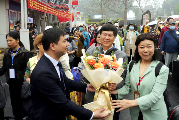 Khách đoàn Trung Quốc bắt đầu đổ dồn sang Việt NamChiều 15/3, một đoàn 124 du khách Trung Quốc nhập cảnh qua Cửa khẩu quốc tế Hữu Nghị (Lạng Sơn), là một trong những đoàn khách Trung Quốc đầu tiên vào Việt Nam bằng đường bộ từ khi nước này khôi phục tour theo nhóm.
