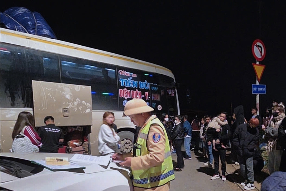 Qua kiểm tra, lực lượng chức năng xác định tài xế điều khiển phương tiện là Lý Văn Đ. (SN 1986, trú tại Tuyên Quang); trên ô tô 45 chỗ có 83 hành khách, tức là xe chở quá 38 người so với quy định.
