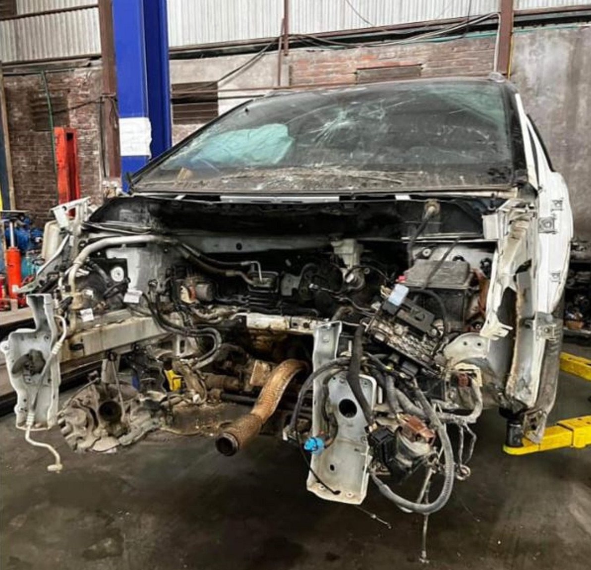 Một số hình ảnh được đăng tải trước khi sửa chữa cho thấy phần đầu xe bị va chạm mạnh biến dạng hỏng hoàn toàn, hầu hết các chi tiết phụ tùng đều biến dạng, riêng cụm động cơ xe vẫn được giữ nguyên.