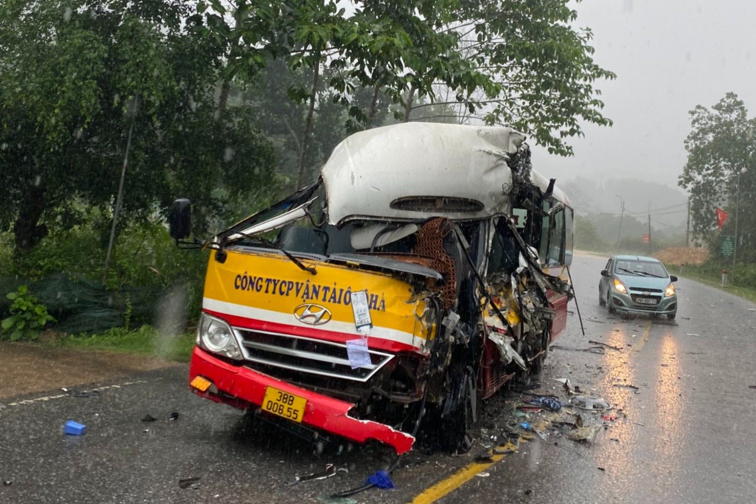 "Thời điểm xảy ra tai nạn trời mưa to, rất may hành khách không bị thương", lãnh đạo Công ty CP vận tải ô tô Hà Tĩnh nói thêm.