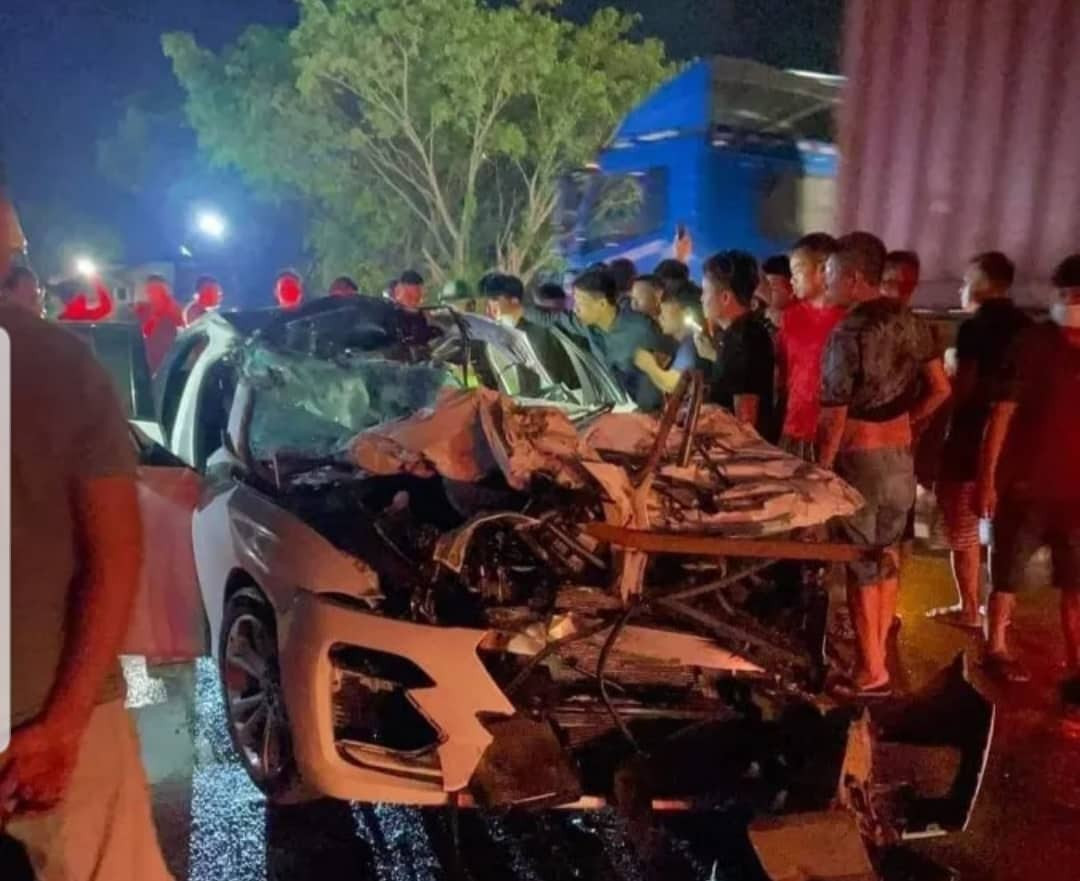 Cùng thời điểm trên xe ô tô con BKS 17A. 234.12 đi tới, va chạm mạnh từ phía sau xe container. Hậu quả, xe con bị kẹt cứng dưới gầm xe container, biến dạng.