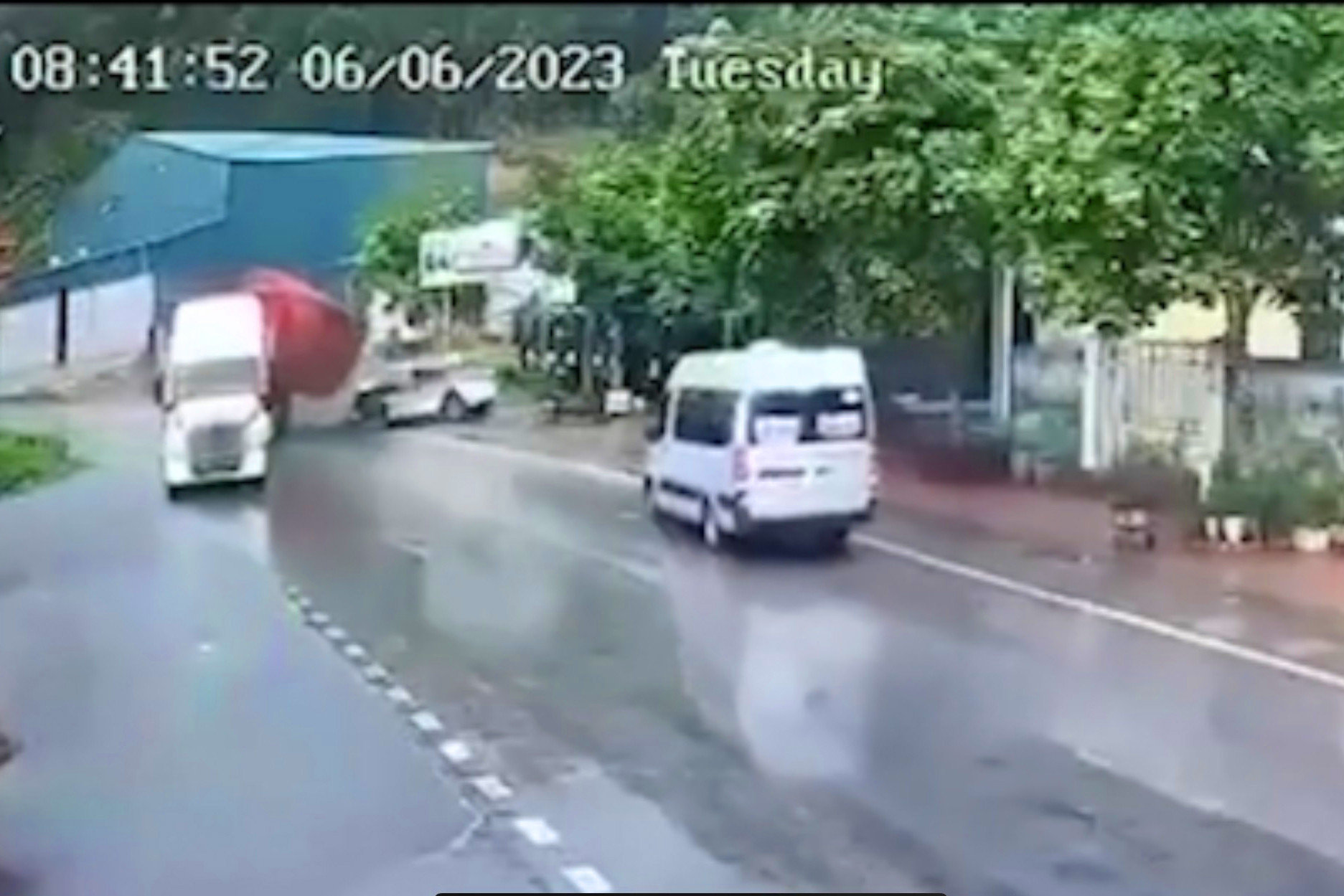 Hôm nay (6/6), đại diện Đội CSGT số 3, Công an tỉnh Quảng Ninh cho biết xe của đơn vị này vừa bị xe container va chạm khi đang di chuyển vào buổi sáng cùng ngày. Vụ việc xảy ra trên tuyến QL18 đoạn ngã ba Yên Than, huyện Tiên Yên và được camera ghi lại.