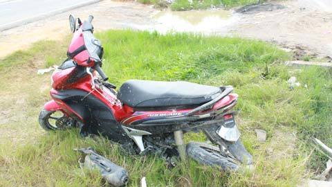 Theo ghi nhận của VietNamNet tại hiện trường, toàn bộ dàn kính xe ô tô đã bị bể nát do va đập mạnh. Toàn bộ đồ đạc cá nhân torng xe đã văng hết ra ngoài. Cách đó khoảng 10 mét, chiếc xe máy cũng bị gãy phuộc sau, rơi luôn bánh sau và pô xe xuống đường.