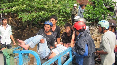 động xe cơ giới đưa nạn nhân đi cấp cứu.