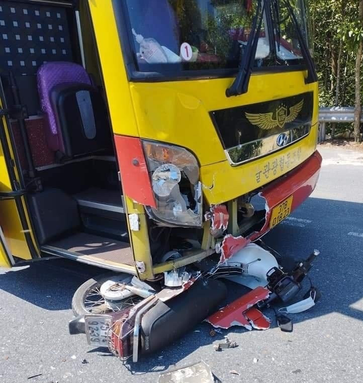 Khi vừa đến điểm giao với quốc lộ 1A, xe của chị Hoa bất ngờ bị ô tô khách BKS 37B – 018.23 do tài xế Nguyễn Xuân Thiết (46 tuổi, quê Nghệ An) điều khiển di chuyển theo hướng Đà Nẵng – Huế đâm mạnh và kéo lê dưới gầm.