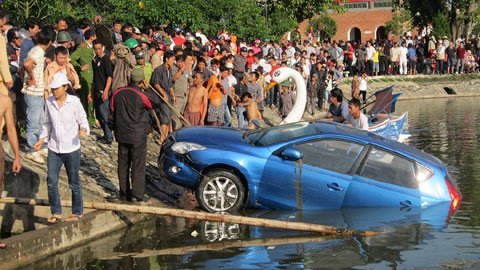 Theo người dân chứng kiến vụ việc cho biết, có 3 người trong đó có 2 nam, 1 nữ đang ngồi nhậu tại quán bia Lộng Gió. Sau khi cuộc nhậu tan, 3 người cùng lên xe ô tô con thì bất ngờ chiếc xe mang BKS 30M – 0768 do một người đàn ông điều khiển vượt lên vỉa hè, đâm vào một cây rồi lao thẳng xuống hồ chìm nghỉm.