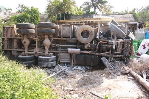 Sau khi va chạm, xe tải mang BKS 75C - 020.52 bốc hỏa. Quá hoảng loạn, tài xế nhảy xuống xe thoát thân, chiếc xe không người lái lao vào nhà dân thì bị lật, toàn bộ hàng hóa trên xe tràn ra sân.
