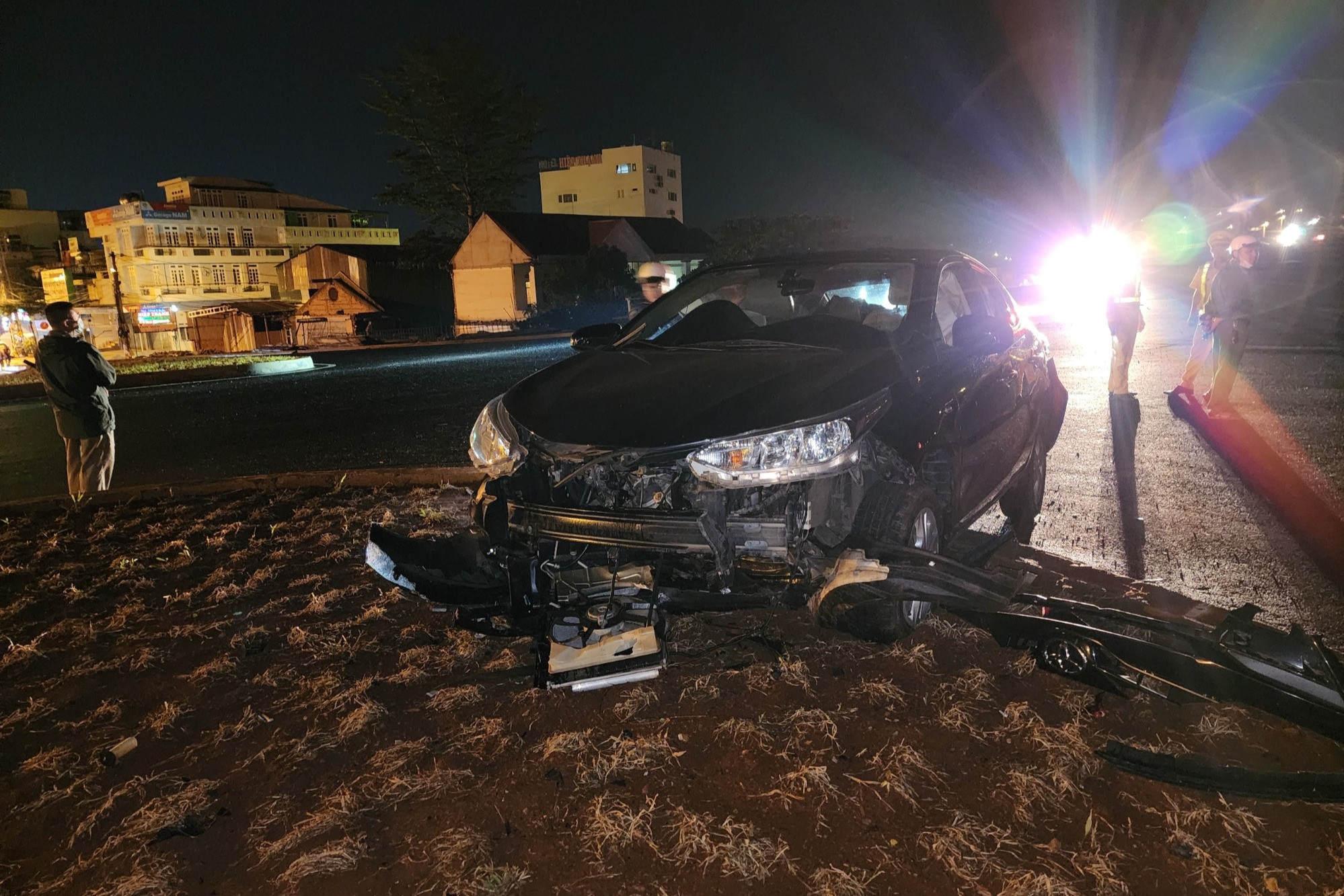 Vụ tai nạn giao thông xảy ra vào 21h ngày 21/5. Ô tô BKS: 47A-274.88 đang lưu thông trên Đại lộ Đông Tây, khi đến đường Đinh Tiên Hoàng (TP Buôn Ma Thuột) bất ngờ tông vào vòng xoay đang thi công.