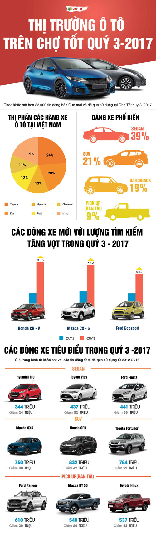 Thống kê từ hơn 33.000 tin đăng ô tô trên Chợ Tốt trong quý 3/2017, việc chờ đợi giảm thuế nhâp khẩu xe trong năm 2018 của đa số khách hàng đã mang tới đợt giảm giá lớn nhất từ trước tới nay của thị trường xe hơi Việt Nam.