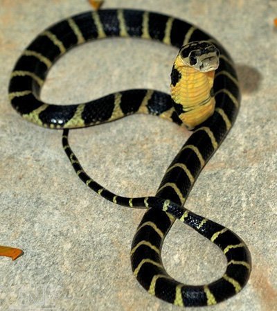 | Rắn hổ mang chúa, một loại rắn cực độc, được xếp bậc "E""trong sách đỏ Việt Nam đang được nuôi dưỡng tại Trại rắn Đồng Tâm. (Ảnh: Báo ảnh Việt Nam) |
