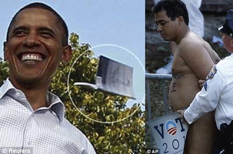 Sau khi Tổng thống Mỹ Barack Obama gần như bị một cuốn sách ném trúng đầu trong cuộc vận động ở Philadelphia, một nam giới khỏa thân đã bị áp giải khỏi hiện trường.