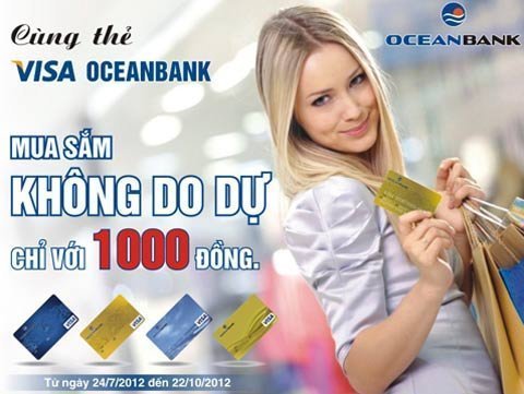 Nhân dịp ra mắt thẻ Visa Credit, OceanBank triển khai chương trình khuyến mại hấp dẫn “Cùng thẻ Visa OceanBank mua sắm với giá 1.000 VND” từ nay đến 22/10/2012.