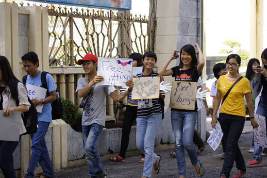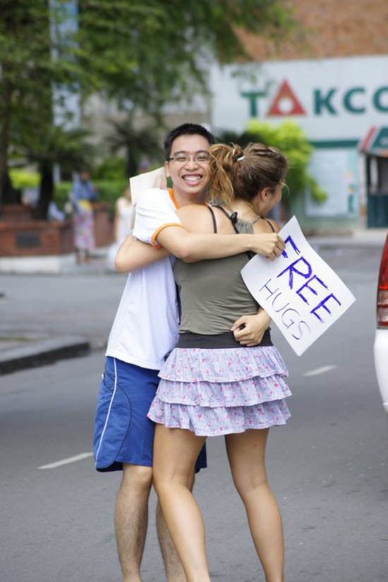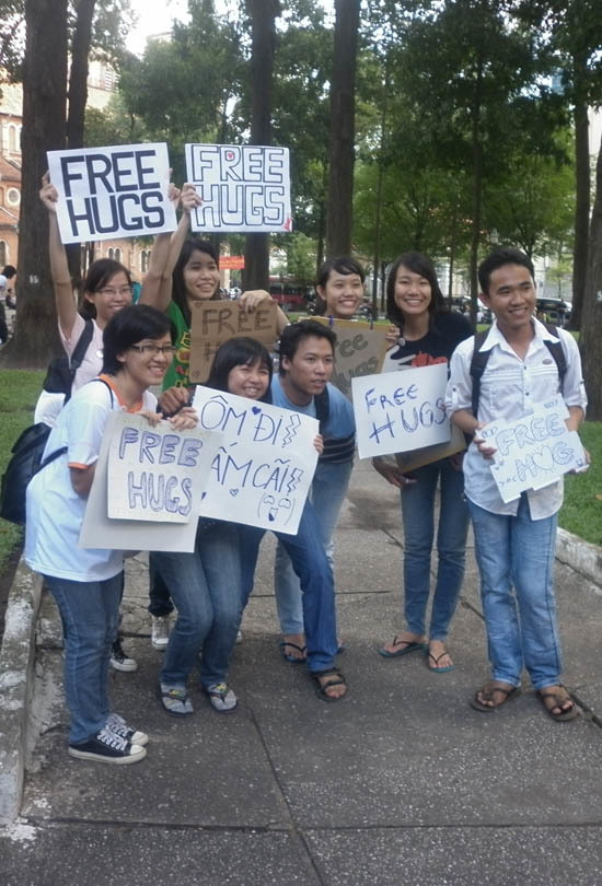 Đây là hoạt động của các bạn trẻ ở TP. Hồ Chí Minh diễn ra ngày 16/7 vừa qua, nhằm hưởng ứng ngày quốc tế “Ôm tự do” (Free Hugs). Hoạt động Free Hugs tuy chưa thực sự phát triển rộng khắp ở Việt Nam nhưng cũng đã thu hút được sự quan tâm của nhiều bạn trẻ.