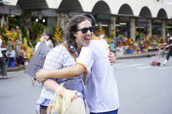 hay người qua đường đều trao nhau những cái ôm nồng thắm.
