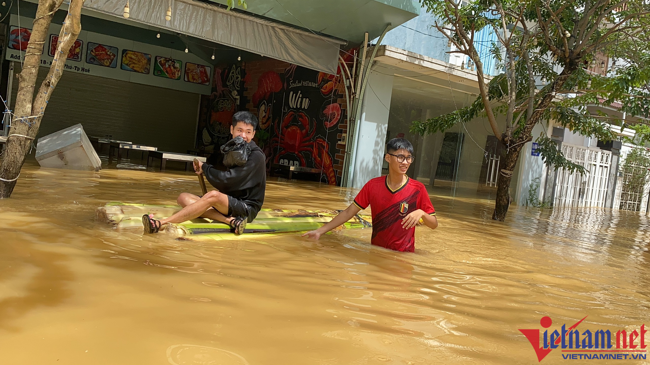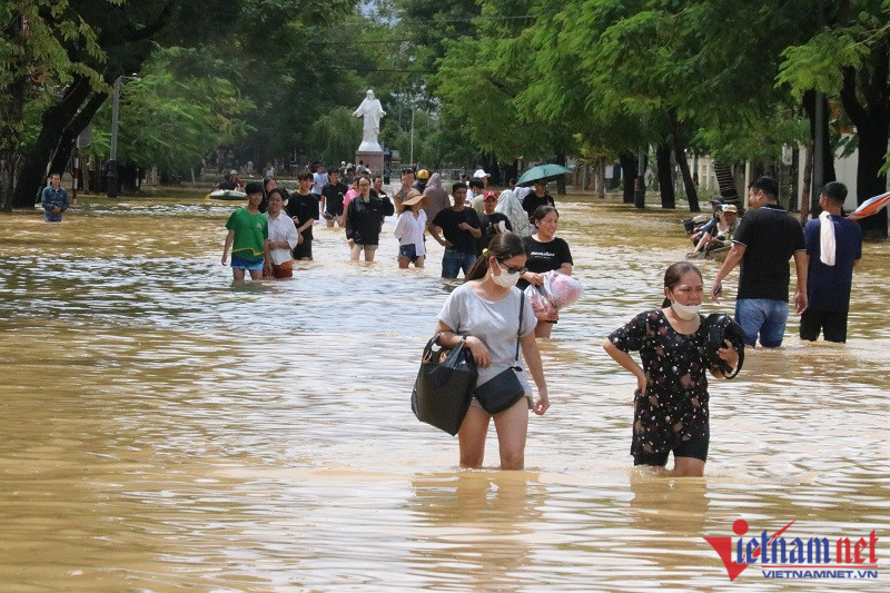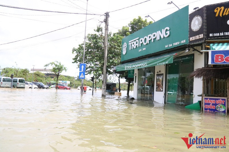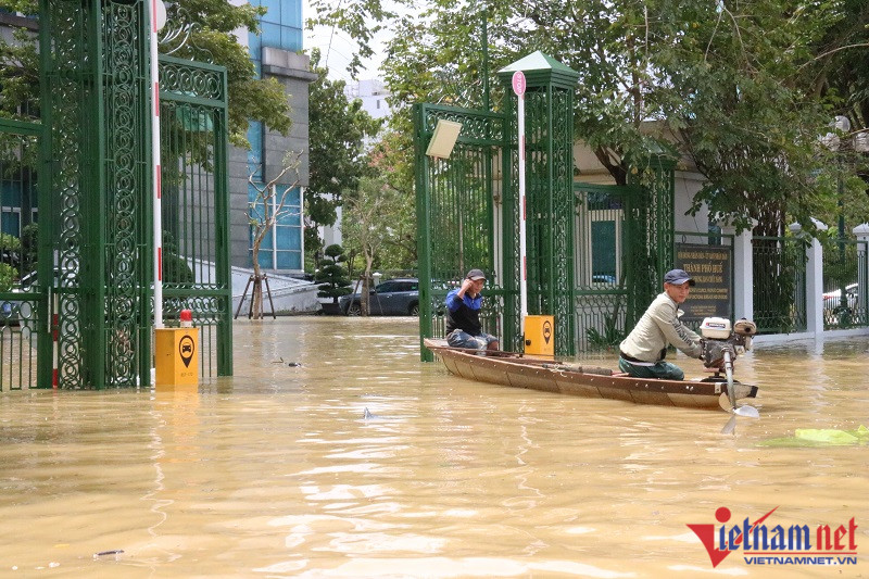 Nước lũ bủa vây trung tâm TP HuếTheo quan sát của PV VietNamNet, sáng và trưa nay, trên địa bàn tỉnh TT-Huế trời đã tạnh mưa. Tuy nhiên, nước lũ dâng cao trong đêm 14/10 và rút chậm, nhiều nhà cửa, tuyến đường trên địa bàn TP Huế nước ngập sâu, có nơi hơn 1mNước lũ dâng cao tại các tuyến đường quanh khu quy hoạch Xuân PhúTại trục trung tâm đường Bà Triệu giao Tố Hữu, nước dâng cao gần 1mĐường vào trụ sở UBND TP Huế mênh mông biển nước vào trưa 15/10Lũ tràn vào gây ngập trụ sở UBND TP HuếNhiều nhà cửa của người dân ở phường Xuân Phú ngập sâu trong dòng lũXe cộ bị nước lũ dâng cao, làm hư hỏngNgười dân bì bõm lội ra đường khi nước dâng quá nửa ngườiNgười dân tận dụng ghe thuyền, kết bè chuối để di chuyển trong dòng nước lũTP Huế và các huyện thị vùng ven hiện mưa ngớt hạt nhưng do các hồ thủy lợi và thủy điện đồng loạt xả lũ để đưa về mực nước an toàn nên nhiều khu dân cư thấp trũng tại các địa phương này bị ngâp sâu trong lũ. Lực lượng quân đội, công an, dân quân địa phương tiếp tục sử dụng các phương tiện để tiếp cận và đưa các hộ dân có nhà bị ngập sâu từ 0,5m trở lên đi di tản tránh lũ khẩn cấp