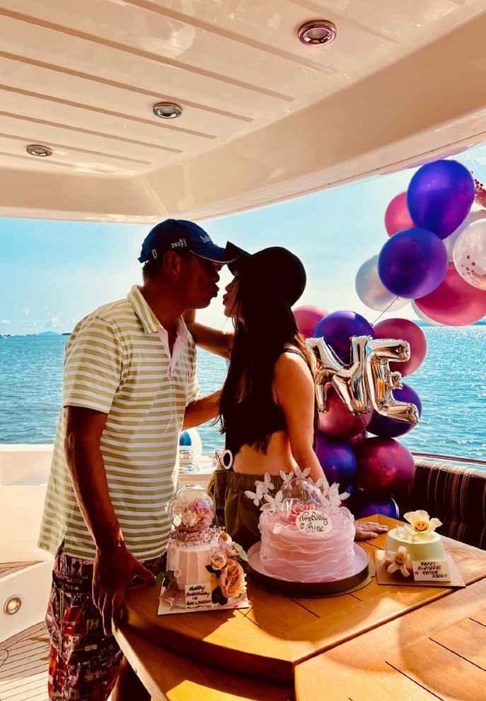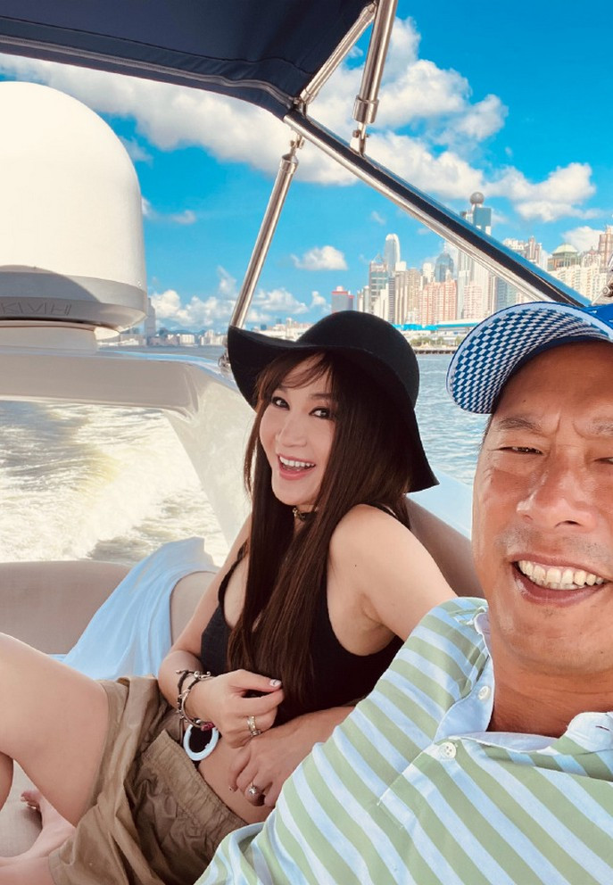 "Đát Kỷ" và ông xã dành cho nhau cử chỉ âu yếm trước mặt bạn bè. Trong ngày ý nghĩa của mình, cô gửi lời cảm ơn đến ông xã đã luôn là người đồng hành lý tưởng cùng mình suốt hơn 20 năm qua.