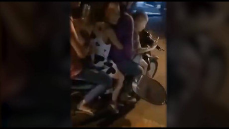 Bé trai được cho là khoảng 5 tuổi cầm lái, có phụ nữ đội mũ bảo hiểm ngồi phía sau. Trên yên xe còn hai bé khác khoảng 6-7 tuổi.