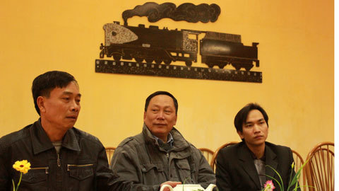 | Những công nhân lái tàu: Hùng, Dũng và Đào Nguyên Ngọc (từ trái qua) trong buổi trò chuyện với PV VietNamNet. |