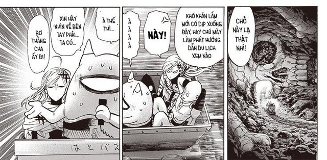 Và không thể quên anh trọc Saitama, khi dù chiến trận đang căng thẳng như dầu sôi lửa bỏng, anh ta vẫn thư thái dạo chơi khắp hang ổ của Tổ Chức Quái Vật như đang đi du lịch. Mong là chap sau anh ta sẽ không xuất hiện để các độc giả còn có thể nhìn thấy sức mạnh mới của Vua Quái Vật Orochi đấu với Tatsumaki, chứ không lại 1 đấm bốc hơi thì tiếc nuối vô cùng.