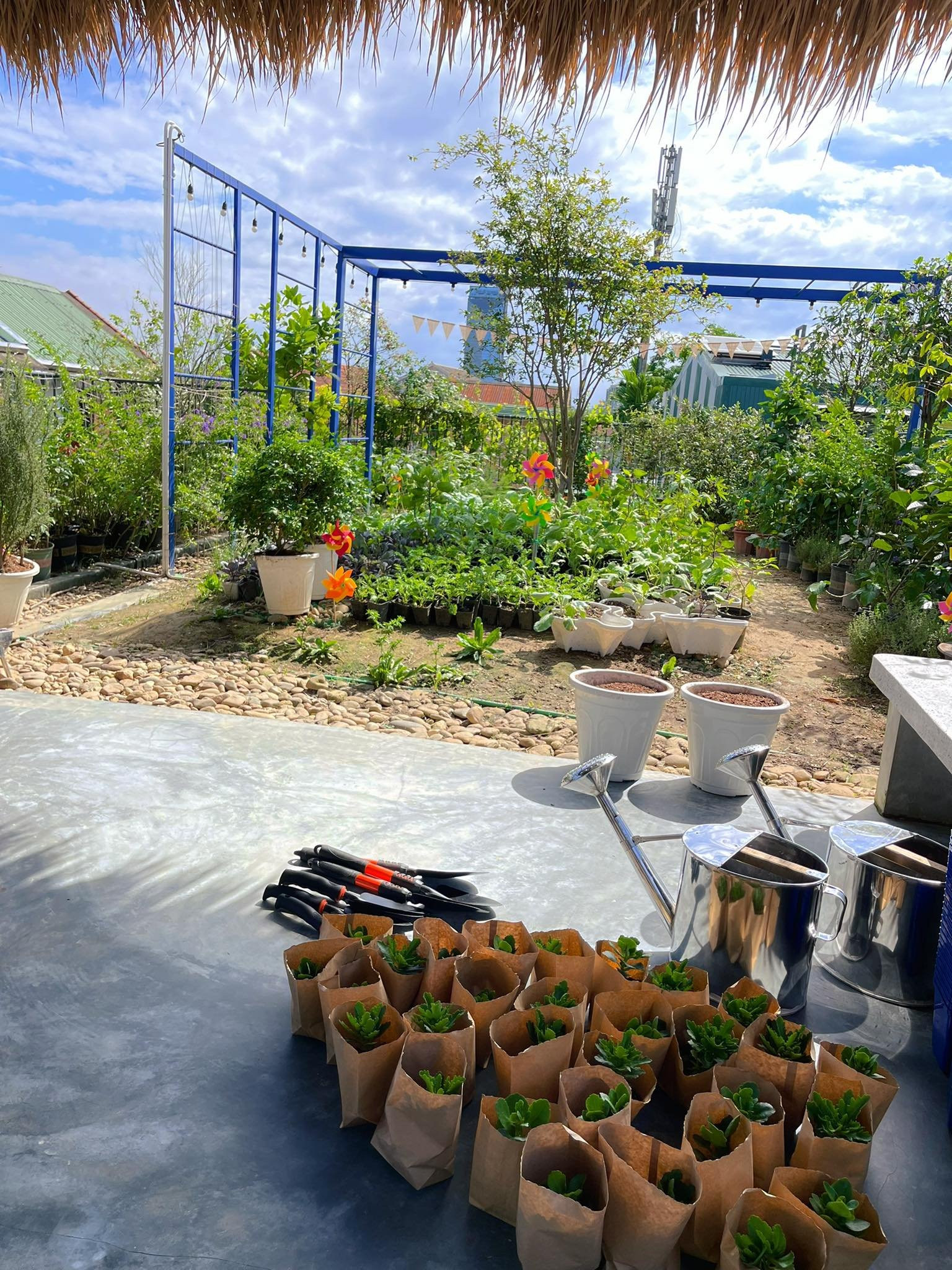 Sau giờ đi học, các con anh ra vườn làm "nông dân", học hỏi việc trồng cây và có trải nghiệm thật thú vị.