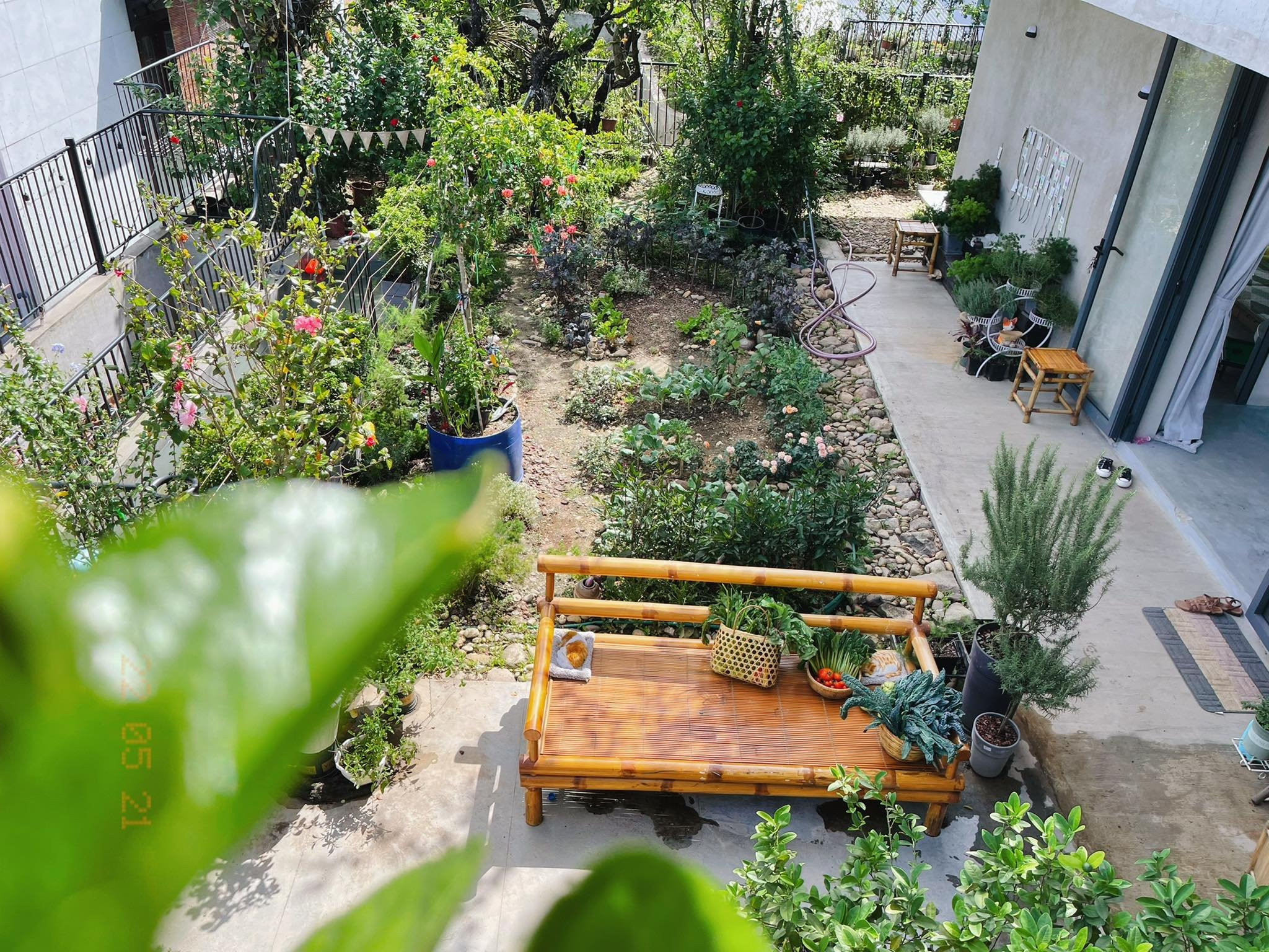 Khu vườn này có tác dụng lọc bụi, trong lành và mát nhà, mang đến cho đại gia đình anh cuộc sống lý tưởng, nhiều trải nghiệm.