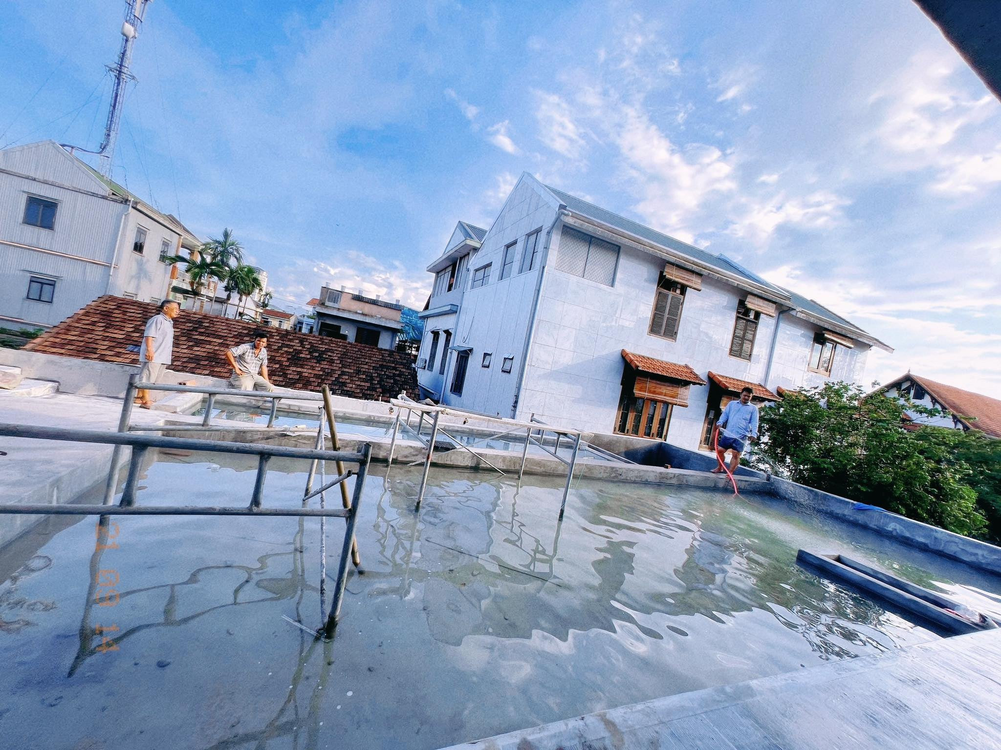 Toàn bộ các công đoạn xây dựng anh đứng ra chỉ huy thợ làm theo cách mình tự nghiên cứu như: Màng chống thấm nhập trực tiếp từ nước ngoài, vì vật liệu ở Việt Nam không đủ yêu cầu về mặt kỹ thuật hoặc giá cả quá cao. Nhà anh dùng kết cấu thô, to, chịu lực tốt nhưng vật liệu hoàn thiện khá rẻ.