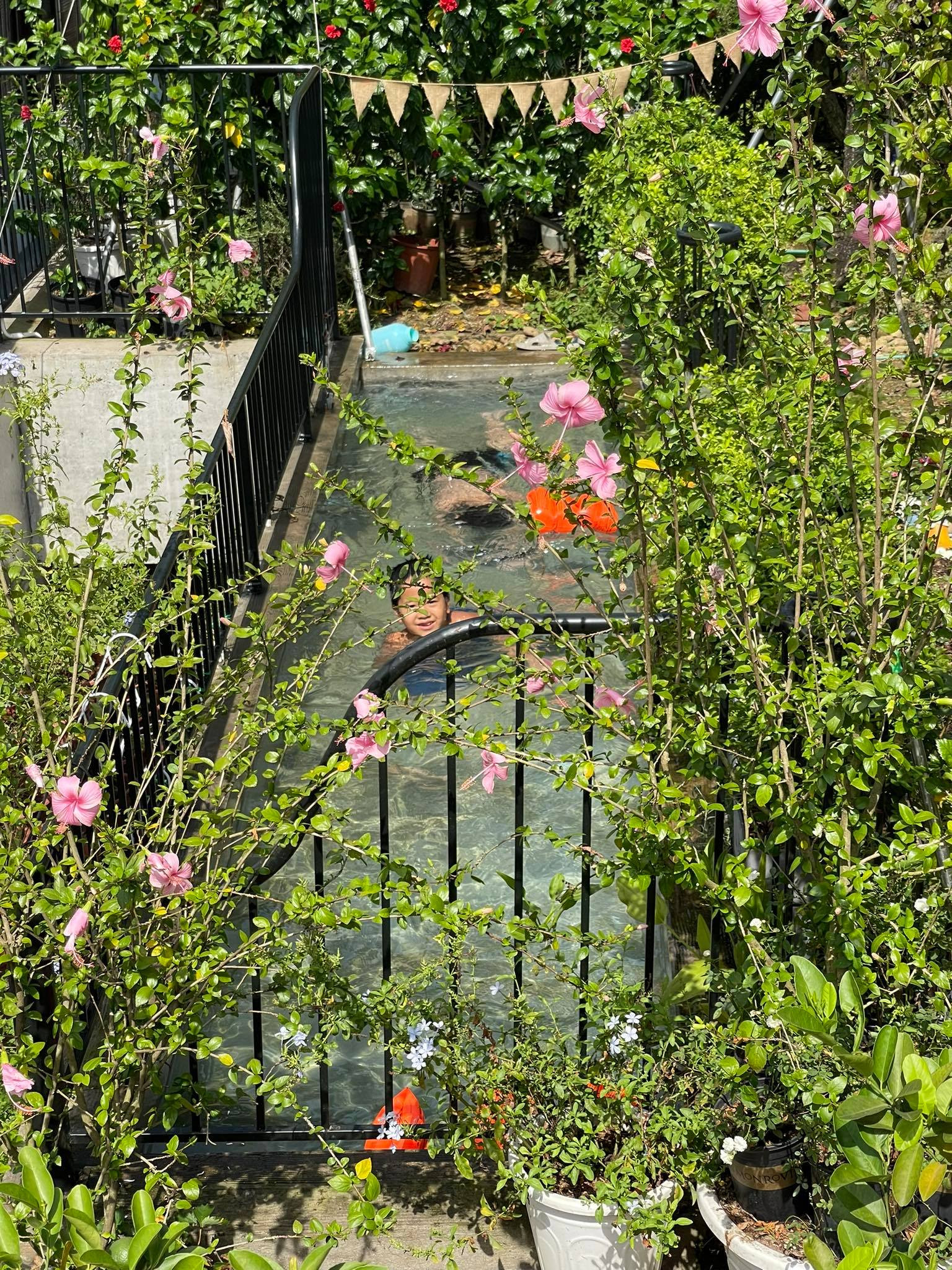 Vì vậy, sau khi hết giãn cách, anh đã quyết định xây dựng ngôi nhà mới trên mảnh đất rộng. Tầng sân thượng được anh chăm chút, tận dụng để biến thành “thiên đường” đúng nghĩa với vườn cây ăn trái, hoa thơm, rau xanh và cả bể bơi mini cho các con trải nghiệm.