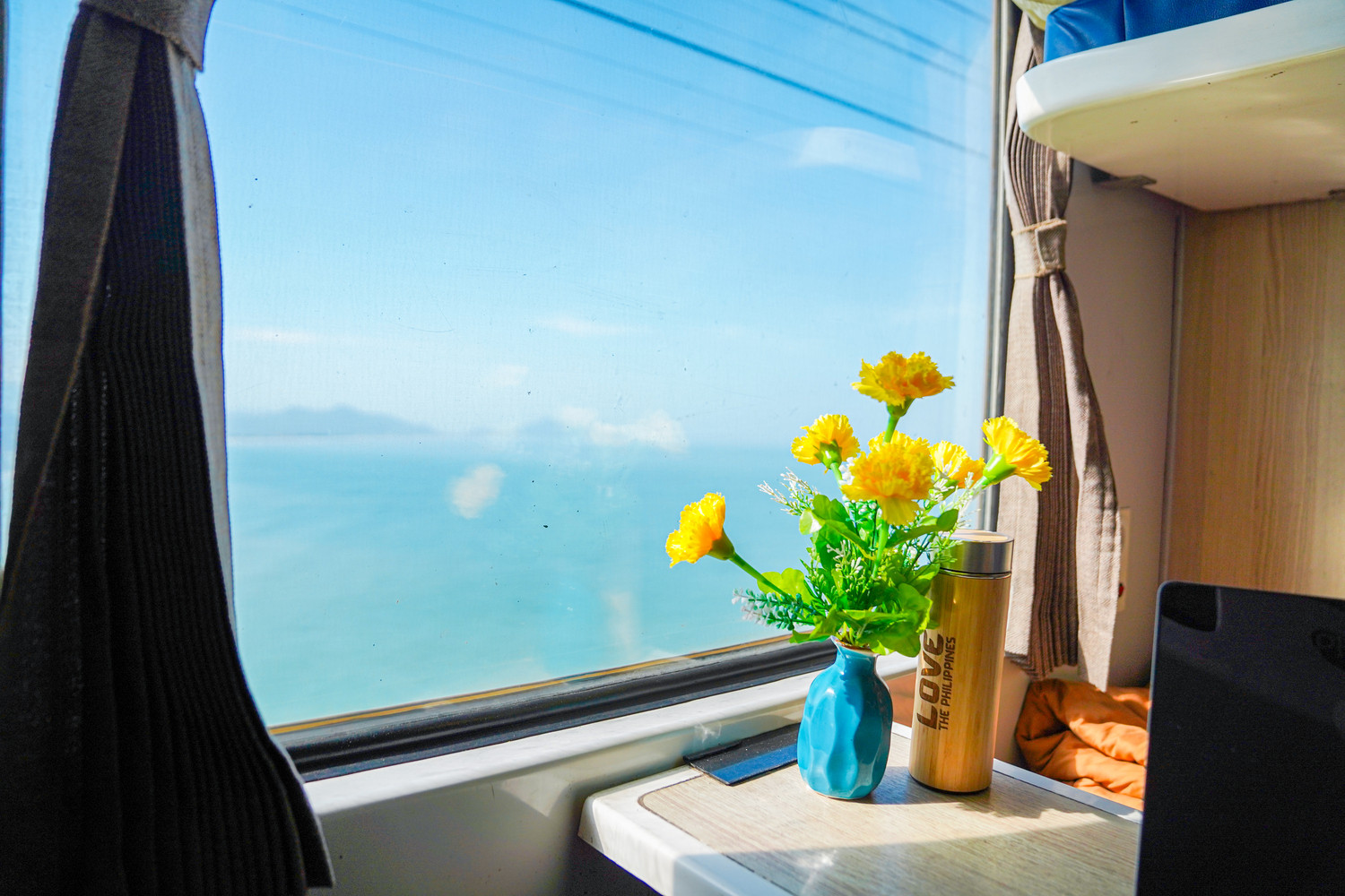 Trên chuyến tàu, gia đình anh Tuân ấn tượng nhất với cung đường đi qua Vịnh Lăng Cô, đèo Hải Vân. Từ khung cửa sổ trên tàu, gia đình anh có thể thong dong ngắm nhìn bầu trời trong veo, bên dưới là vịnh biển xanh biếc lấp lánh.