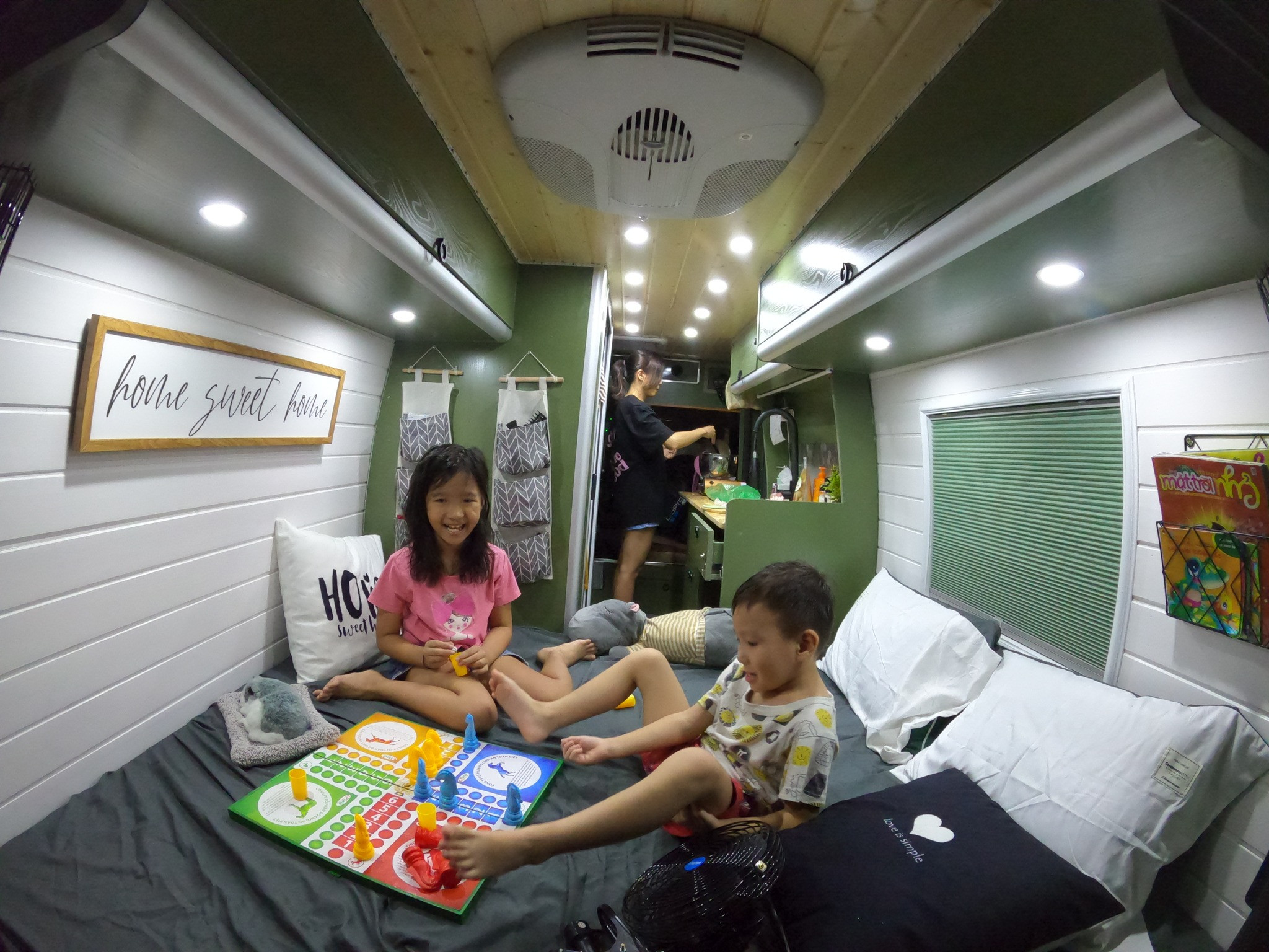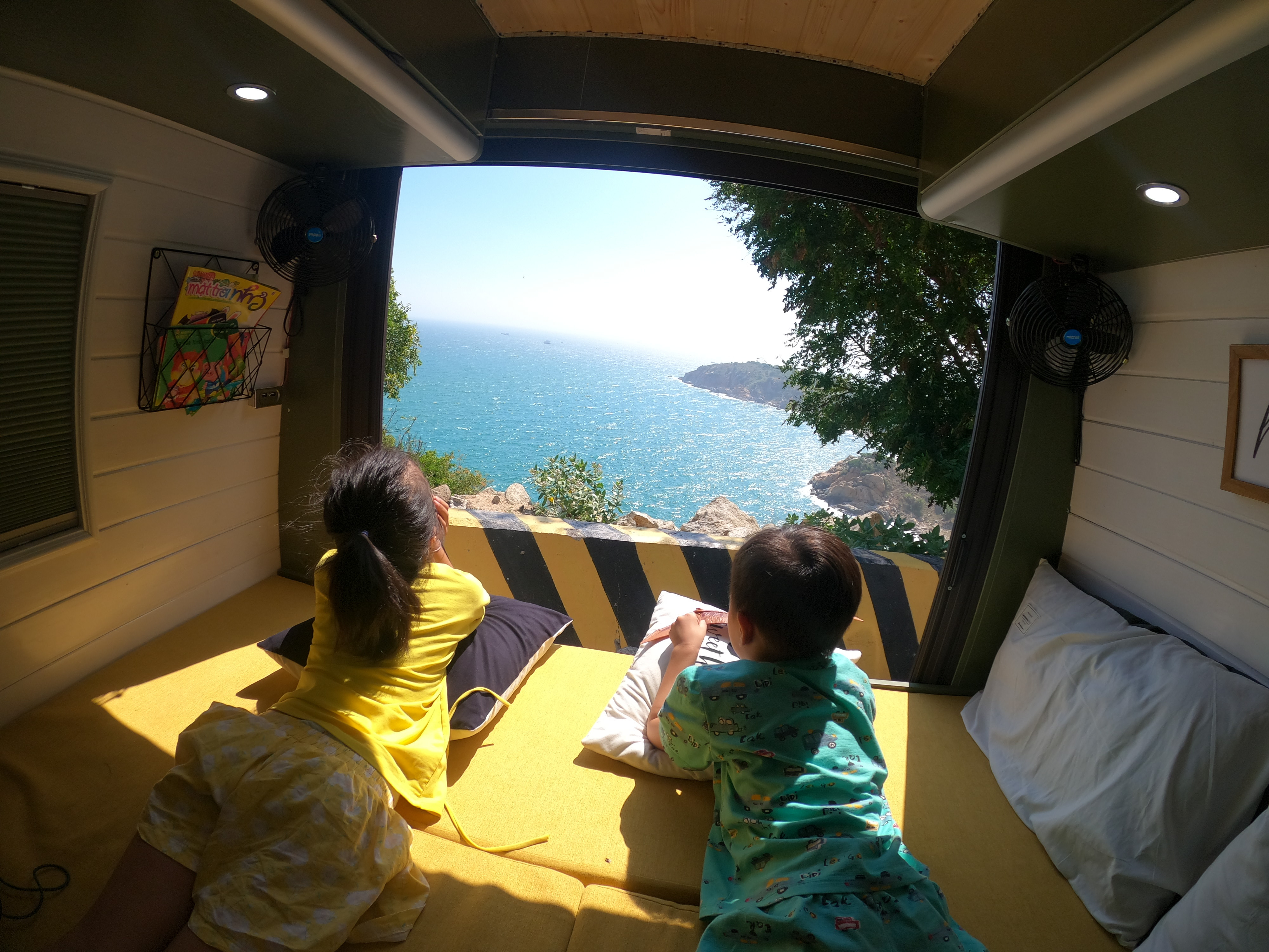 "Gia đình mình từng lái xe chinh phục vùng núi phía Bắc trong 11 ngày, du lịch nhiều tỉnh thành gần Hà Nội nên việc sinh hoạt trong xe khá quen thuộc. Cả nhà ngủ rất ngon trên xe”, vợ chồng anh Sơn cho hay. Khi tới Nha Trang, đúng thời điểm người thân cũng tới đây du lịch, gia đình anh Sơn chuyển ra khách sạn ngủ. "Cả đêm vợ chồng cùng hai con trằn trọc khó ngủ. Sau đêm đó, nhà mình ngủ hoàn toàn trên xe", anh Sơn kể.