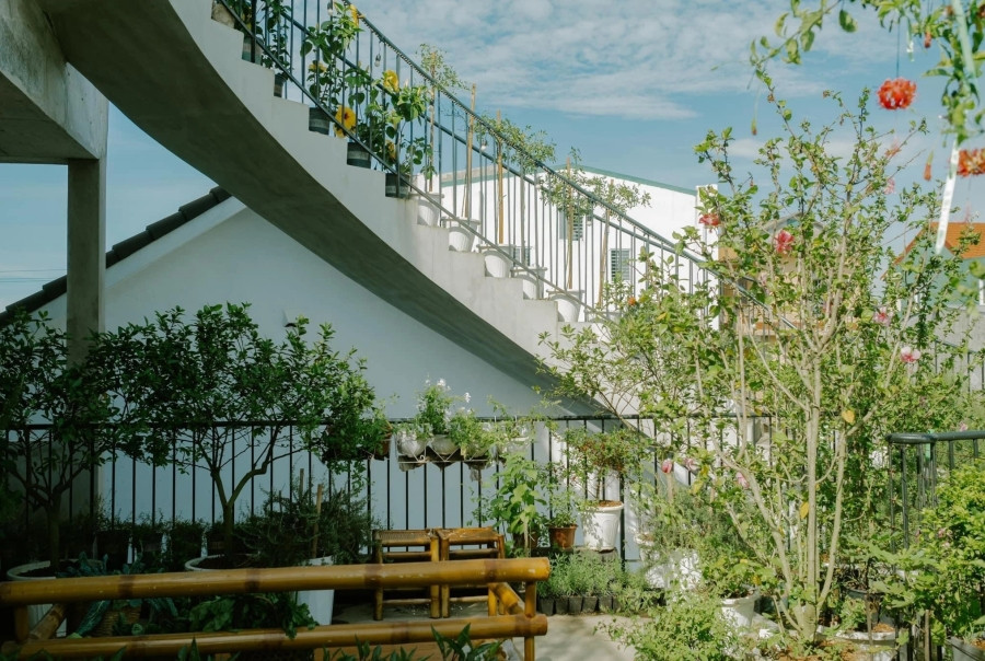 Đến thăm gia đình anh Tùng, bất cứ ai cũng phải ngạc nhiên vì kiến trúc mới lạ và khu vườn độc đáo. Dần dần, nhiều người coi đây là không gian thân thuộc nên thi thoảng đã ghé chơi, cùng nhau uống cà phê, thư giãn.