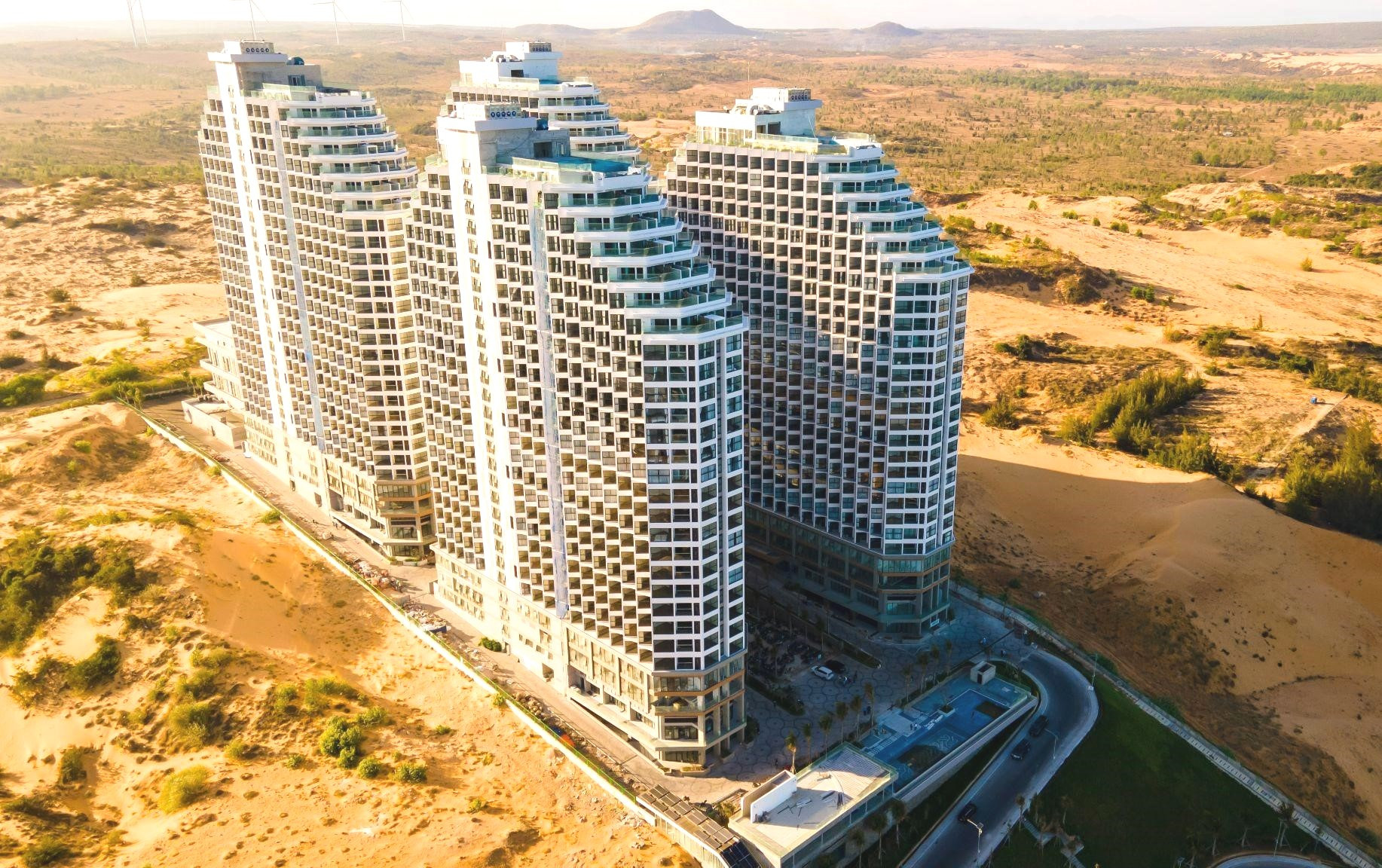 Tại Bình Thuận, dự án Apec Mandala Wyndham Mũi Né có tổng diện tích 4,5ha. Quy mô dự án gồm 4 tòa cao 29 tầng, tổng 2.912 căn shophouse và condotel.