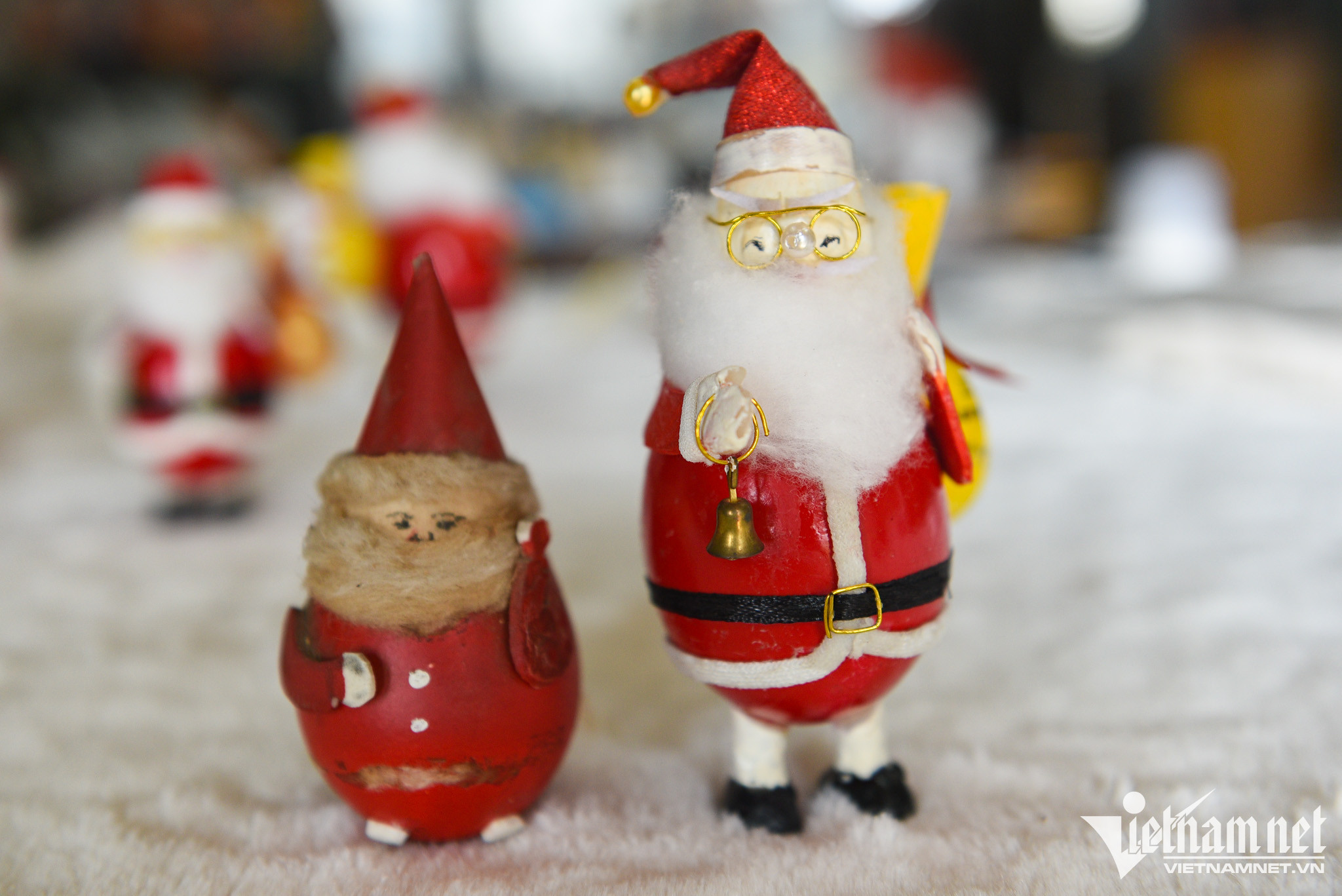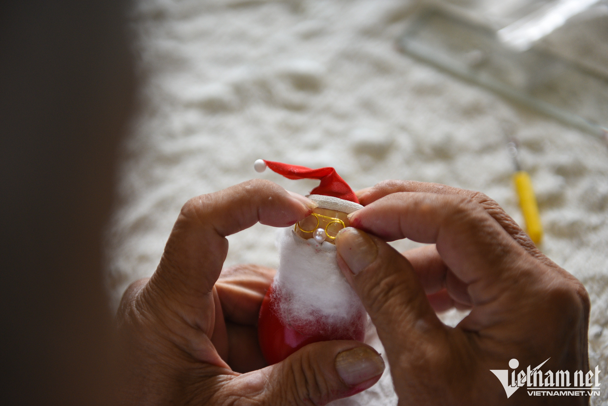 Ông dùng keo dán hồ và keo 502 cố định hai vỏ trứng để tạo hình nhân vật, sau đó phun sơn đỏ lên vỏ trứng tạo hình đặc trưng của ông già Noel.