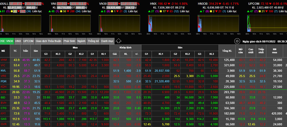 VN30 giảm gần 2%, trong khi HNX-Index giảm 1,1%.