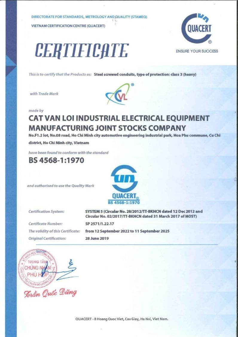 Đại diện Cát Vạn Lợi thông tin thêm, hiện tiêu chuẩn BS 4568 : 1970 cho ống thép luồn dây điện được sử dụng tại các nước châu Âu và các nước thuộc khối Thịnh vượng chung như: Anh, Australia, New Zealand, Malaysia, Singapore, Hongkong.