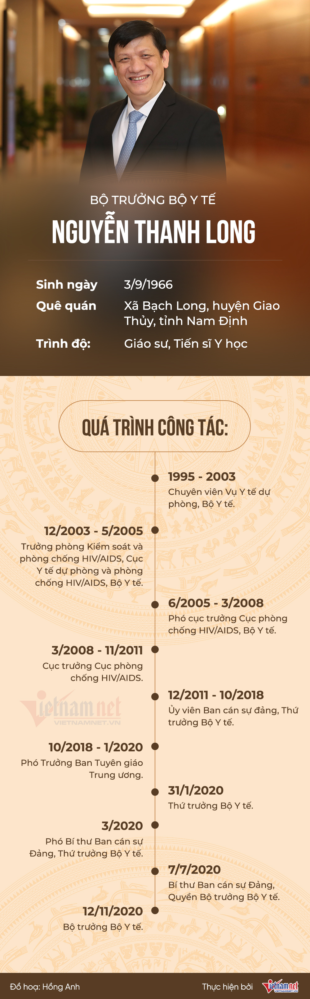 Sau 8 năm làm Thứ trưởng Bộ Y tế không liên tục và hơn một năm làm Phó ban Tuyên giáo TƯ, ông Nguyễn Thanh Long đã chính thức được Thủ tướng giao quyền Bộ trưởng Bộ Y tế.