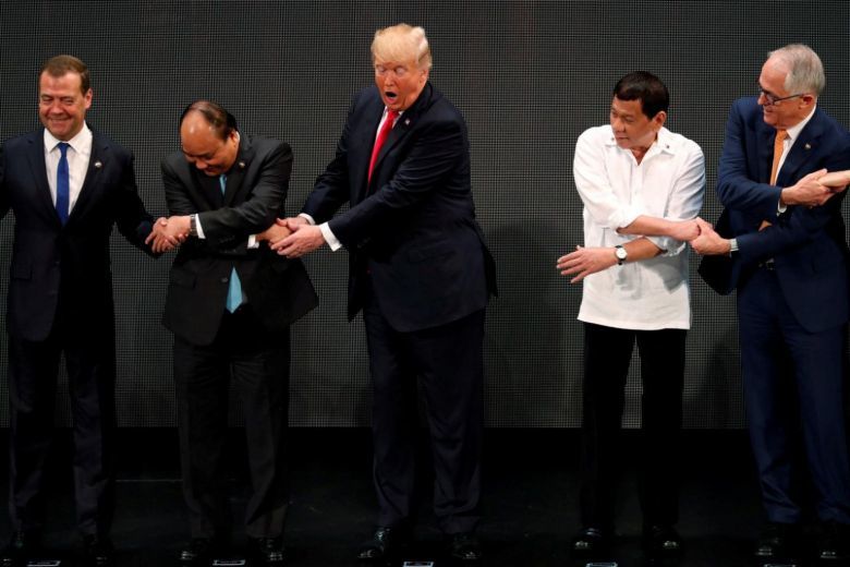 Theo hãng thông tấn AP, ông Trump đang ở Manila dự hội nghị cấp cao Hiệp hội Các quốc gia Đông Nam Á (ASEAN). Khi chụp ảnh kỷ niệm, ông tỏ ra lúng túng trước kiểu bắt tay chéo nhau nhằm thể hiện sự gắn kết của các nhà lãnh đạo ASEAN.