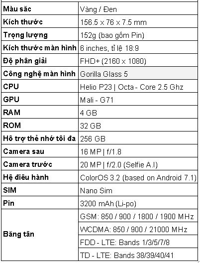 Hệ điều hành Color OS 3.2 (trên nền tảng Android 7.1) của OPPO kết hợp với 4GB RAM Và 32GB dung lượng lưu trữ đem lại các trải nghiệm mượt mà nhất cho người dùng. Khay đựng SIM có 3 khe, hỗ trợ 2 SIM cùng lúc và 1 thẻ nhớ.