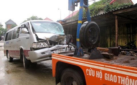 Khi đó, chiếc ôtô 12 chỗ ngồi mang BKS 92B- 00121 lưu thông theo hướng Bắc - Nam, khi đến đoạn trường nói trên đã tông trực diện vào xe ôtô 4 chỗ ngồi mang BKS 37A- 00341 đang chạy ngược chiều.