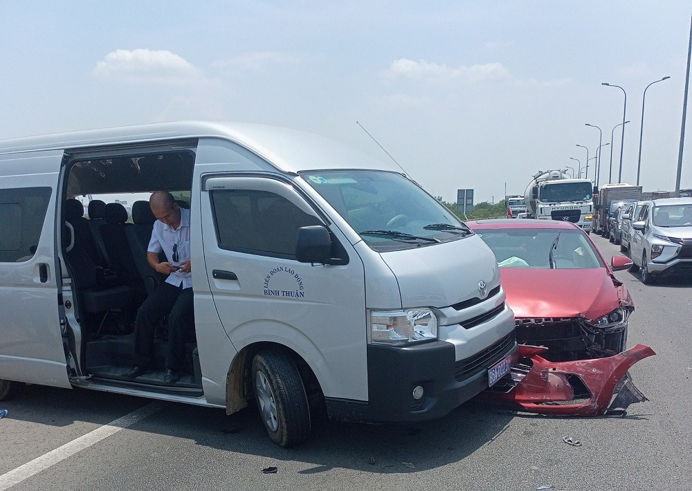 Cả 3 xe gồm 2 ô tô 5 chỗ BKS 72A-25273 và 72L-1925 cùng xe 16 chỗ BKS 86A-00231 lưu thông theo hướng TP.HCM đi Đồng Nai.