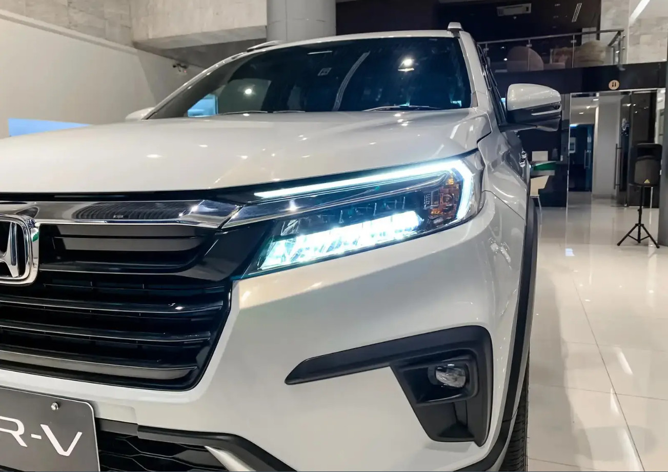 Nằm liền kề là cụm đèn trước vuốt ngược sắc sảo. Hệ thống chiếu sáng trên hai phiên bản BR-V 2023 đều được trang bị hệ thống đèn full LED cho khả năng chiếu sáng tốt. Dải đèn chạy ban ngày tích hợp tính năng tự động bật/tắt theo cảm biến ánh sáng, tự động tắt theo thời gian. Đặc biệt mẫu MPV còn được trang bị thêm đèn pha thích ứng tự động với khả năng tự cân chỉnh thông minh.