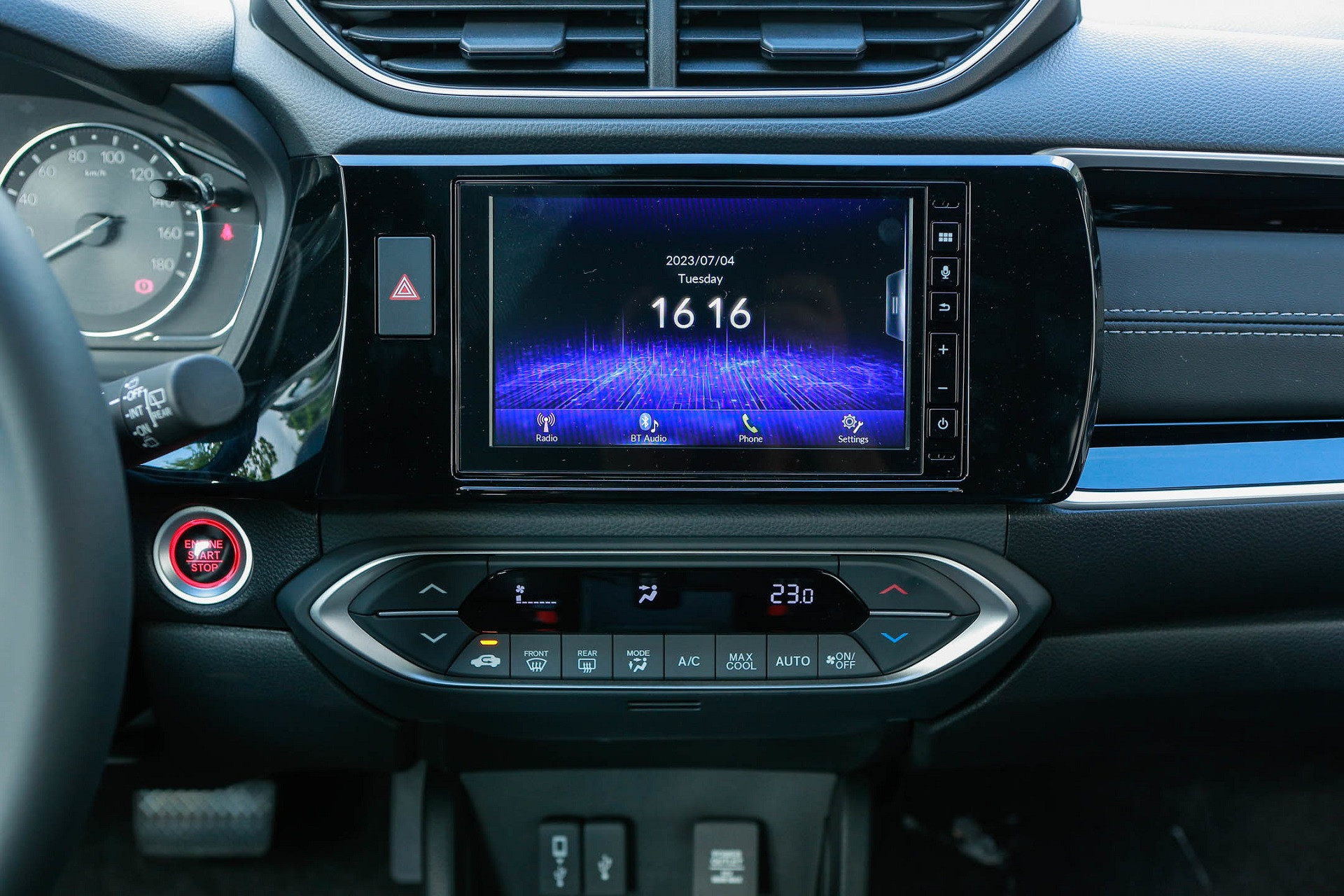 Bảng táp lô Honda BR-V 2023 có thiết kế đối xứng với kiểu cửa gió trung tâm khá giống với CR-V đang lắp ráp trong nước. Thiết kế mang đến sự trung tính và hài hòa, phù hợp với một mẫu MPV đa dụng dành cho gia đình.