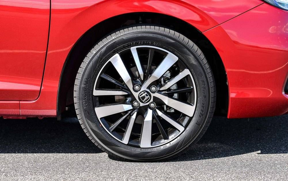 Bánh xe Honda City 2023 cũng được làm mới. Phiên bản City RS trang bị lazang 16 inch 5 chấu kép 2 tone màu tương phản kết hợp lốp 185/55 R16. Phiên bản City L sử dụng lazang 16 inch đa chấu 1 màu đi cùng lốp 185/55 R16. Phiên bản City G dùng lazang 15 inch cùng lốp 185/60 R15.